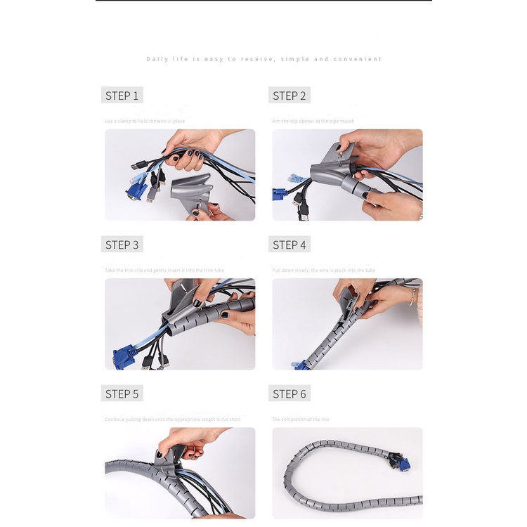 Flexible Spiral Tube Cable Wire Wrap Tidy Organizer Wrapping Band Computer Cable Managerment Cord Clip