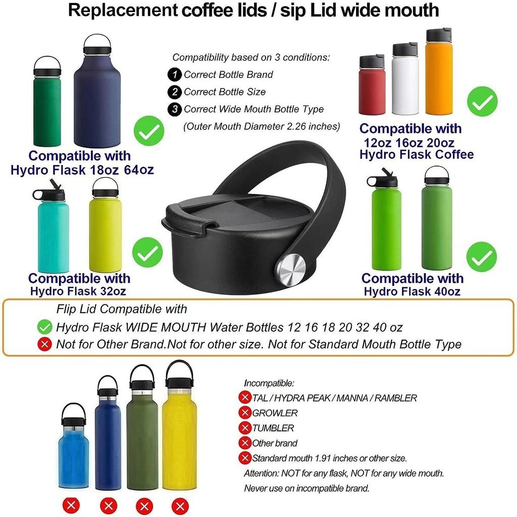 Flip lid for Hydro Flask Wide Mouth 32 40 oz with Flexible Handle, Replacement Coffee Lid Compatible with Hydroflask, Nalgene, and More Top Water Bottle Brands Wide Mouth
