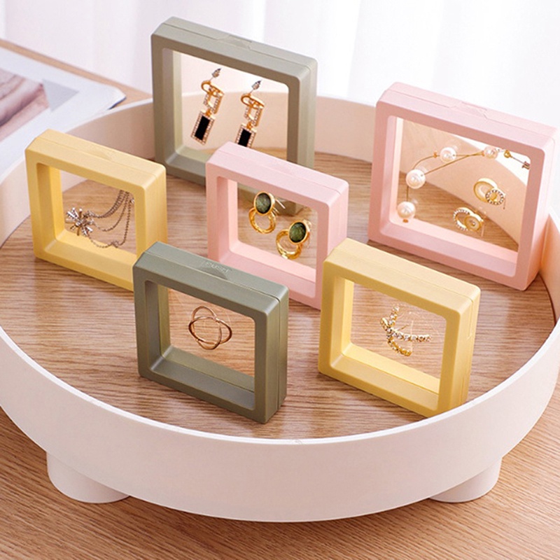 Floating Suspended Jewelry Case 3D Floating Frame Display Stand Jewelry Holder Necklace Earrings Ring Box Organizer