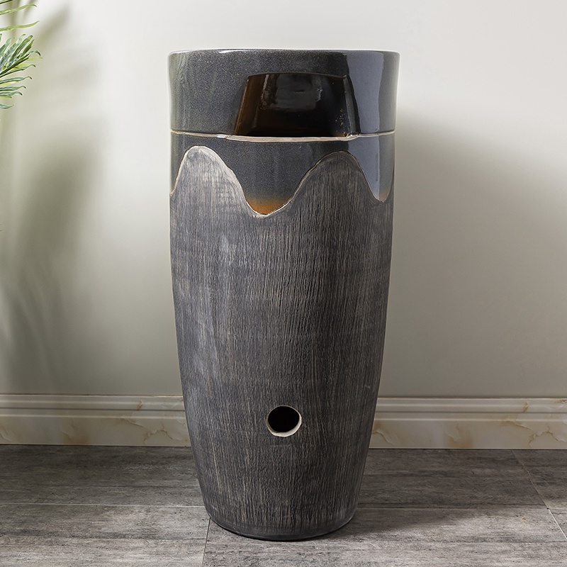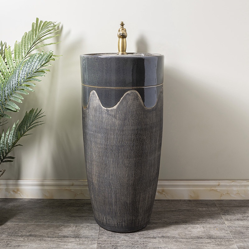 Floor-Type Integrated Pedestal Basin Ceramic Home Bathroom Washbasin Outdoor Courtyard Retro Column Wash Basin2
