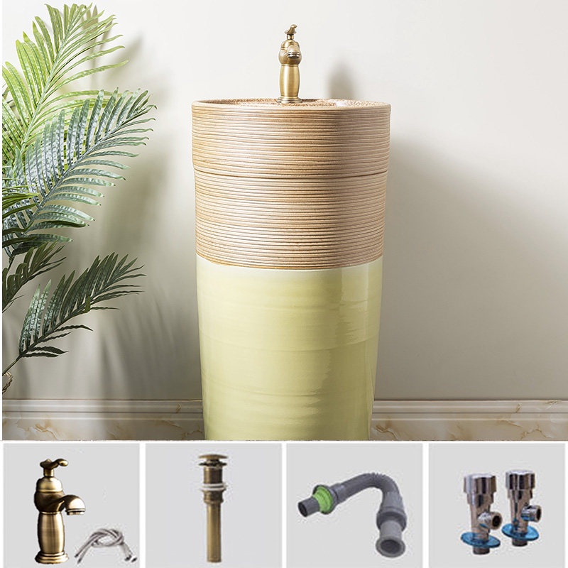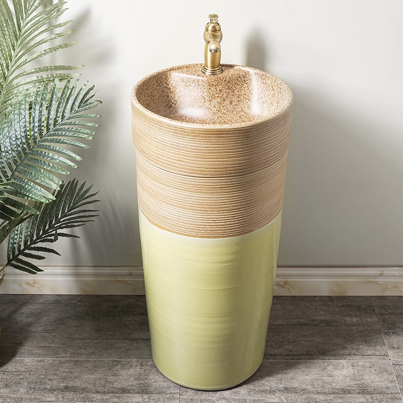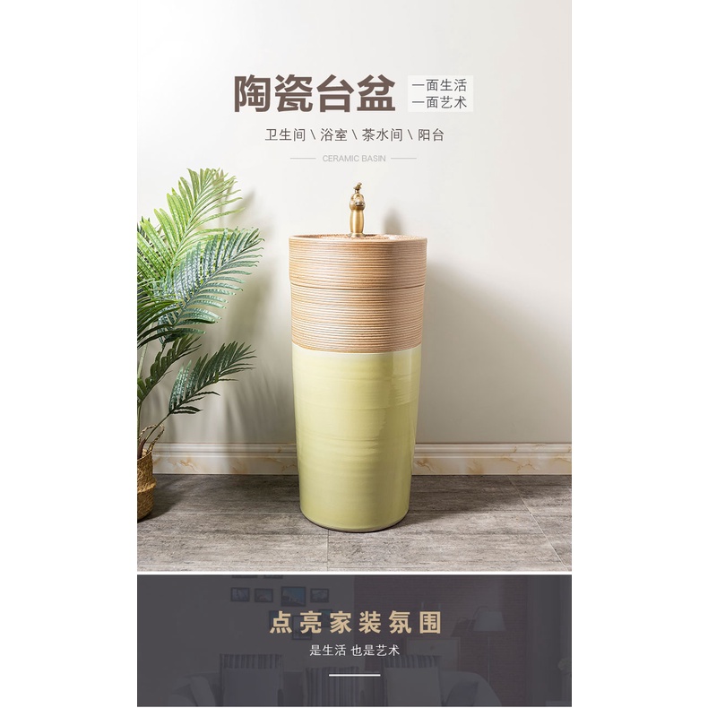 Floor-Type Integrated Pedestal Basin Ceramic Home Bathroom Washbasin Outdoor Courtyard Retro Column Wash Basin3