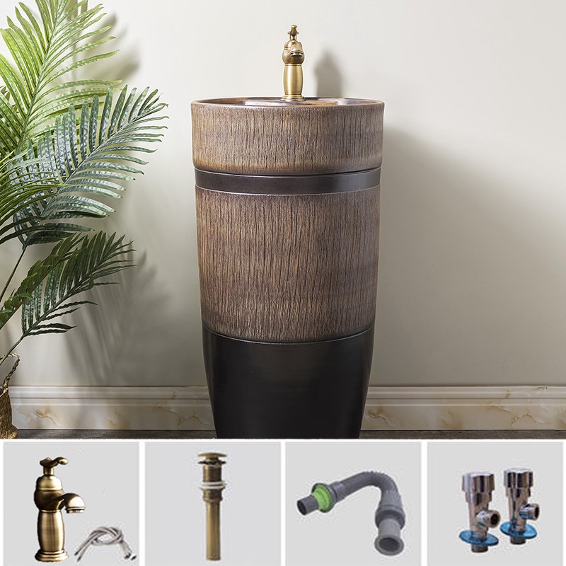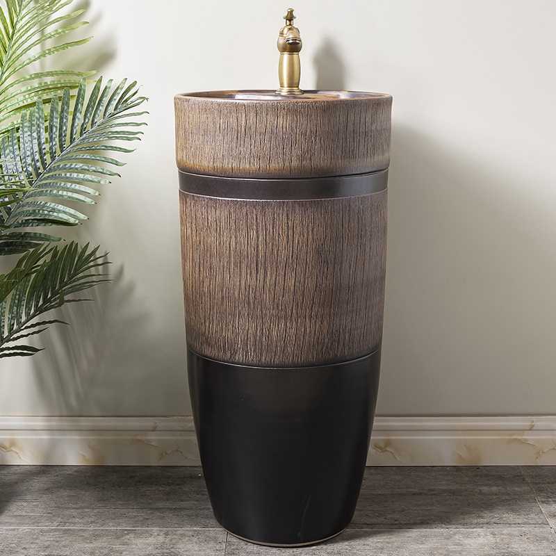 【YS WL】Floor-Type Integrated Pedestal Basin Ceramic Home Bathroom Washbasin Outdoor Courtyard Retro Column Wash Basin4