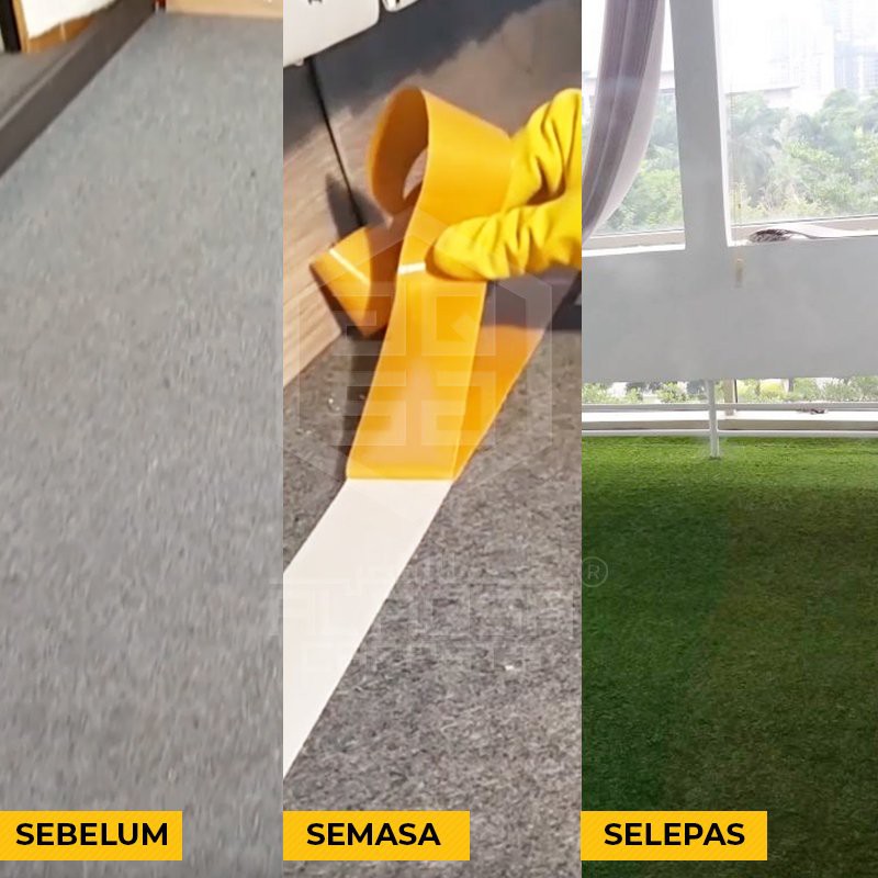 Aqsa Double Sided Tape Rumput Tiruan Tikar Getah Vinyl Floor Artificial Grass Super Grid Design Strong Adhesive Floorin