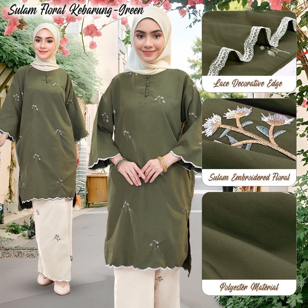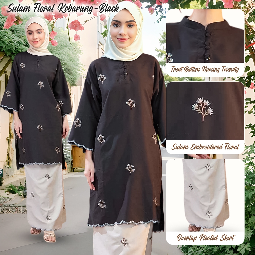 Floral Sulam Baju Kurung Muslim Set Ironless Overlap Pencil Kurung Internet Celebrity Style Casual Suit Raya 2026