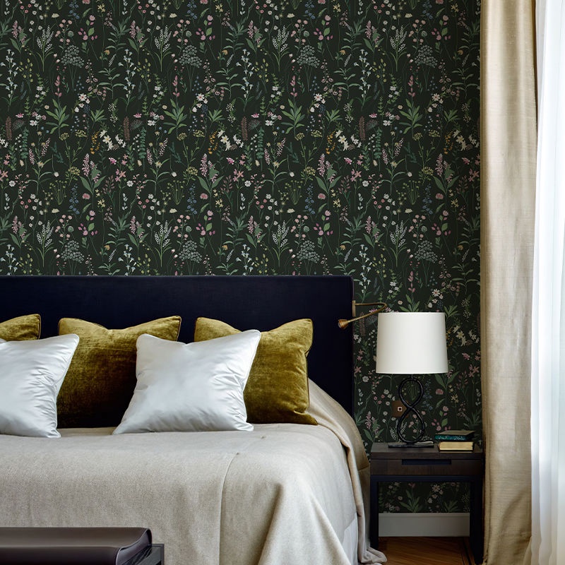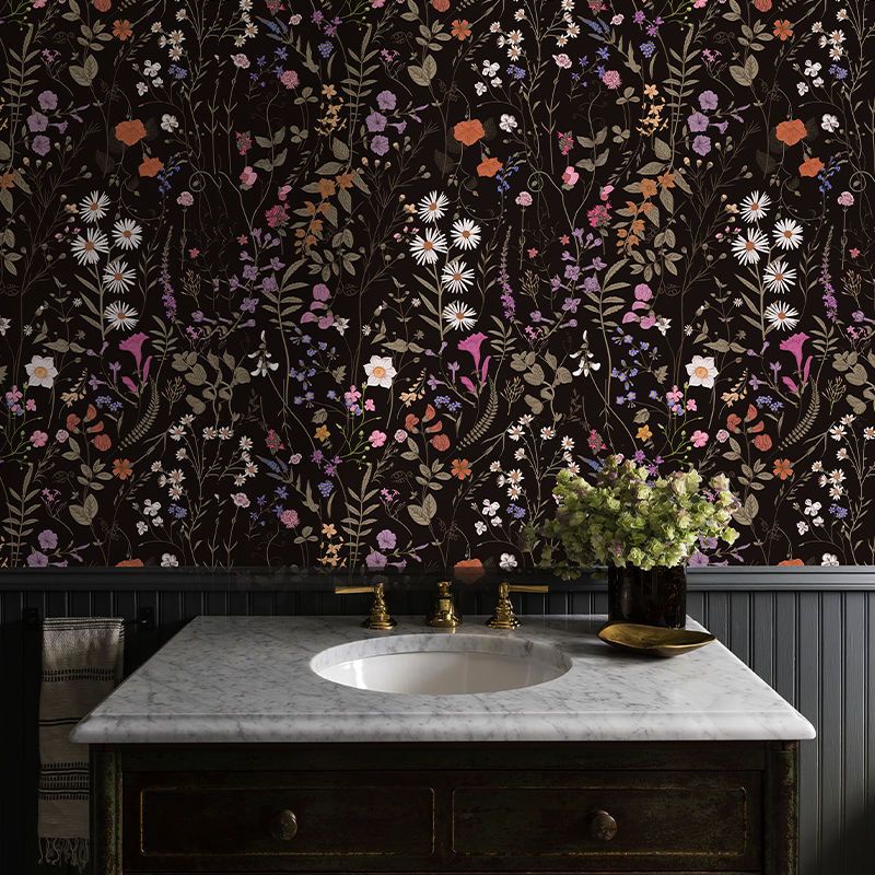 Floral Wallpaper Kertas Dinding Peel and Stick Dark Farm Floral Stick Wallpaper, Wildwood Wallpaper Self Adhesive Wallpaper for Home Bedroom Cabinets