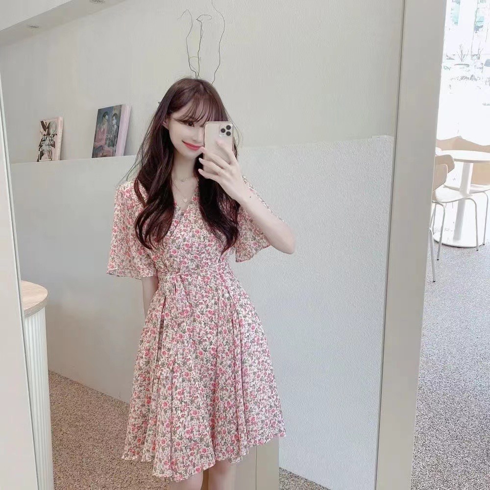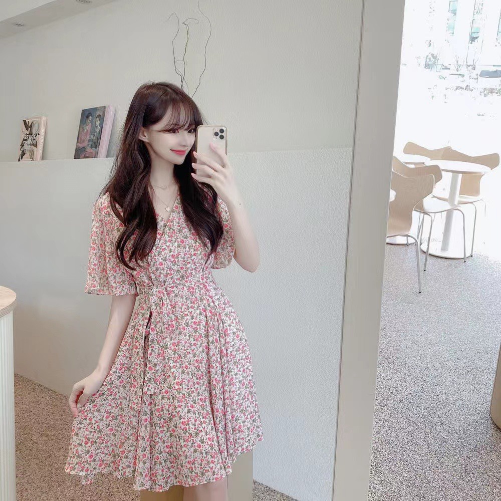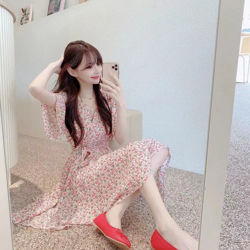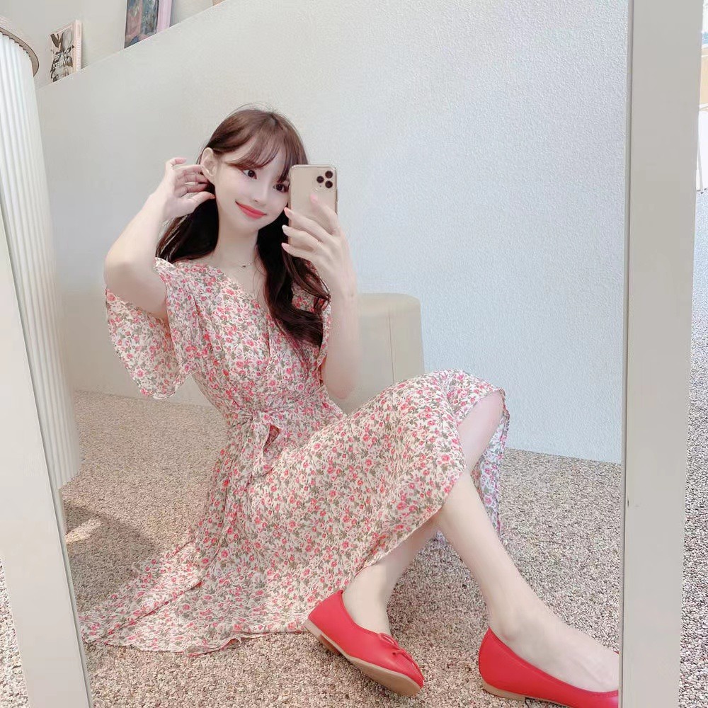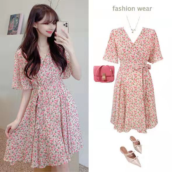 Floral dress women's summer new waist short-sleeved Korean style skirt