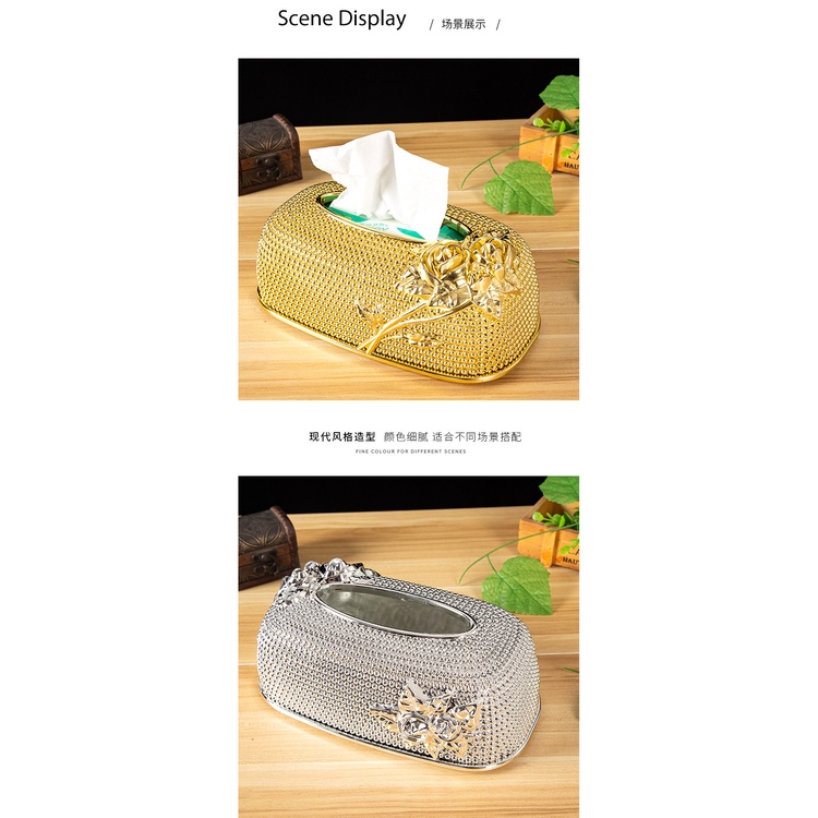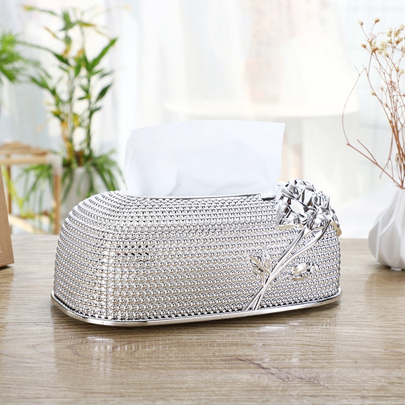 Flower Luxurious Tissue Paper Box Storage 3D Shape Car Table Home Living Room Kitchen Rose Gold Sliver Container