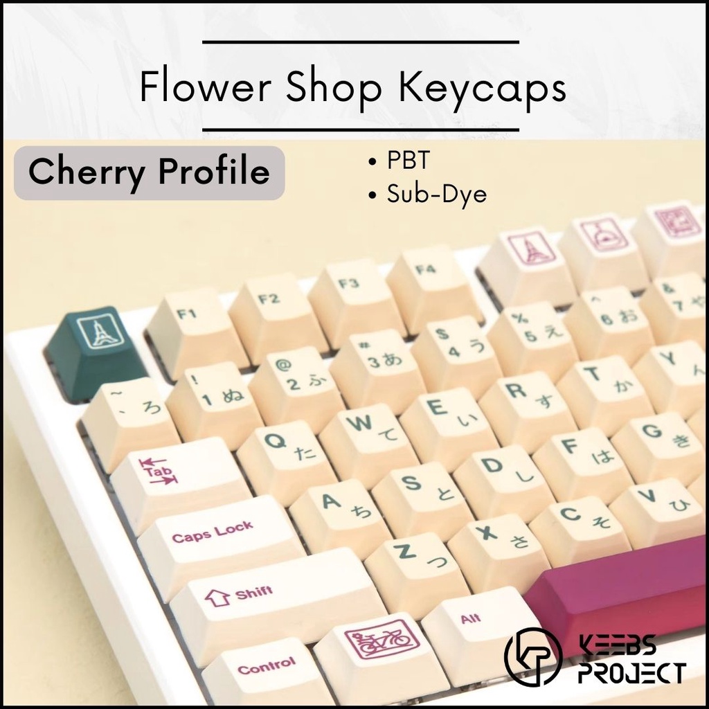 Flower Shop PBT keycaps | 129 keys | Dye-Sub | Purple Green Vintage Keycaps