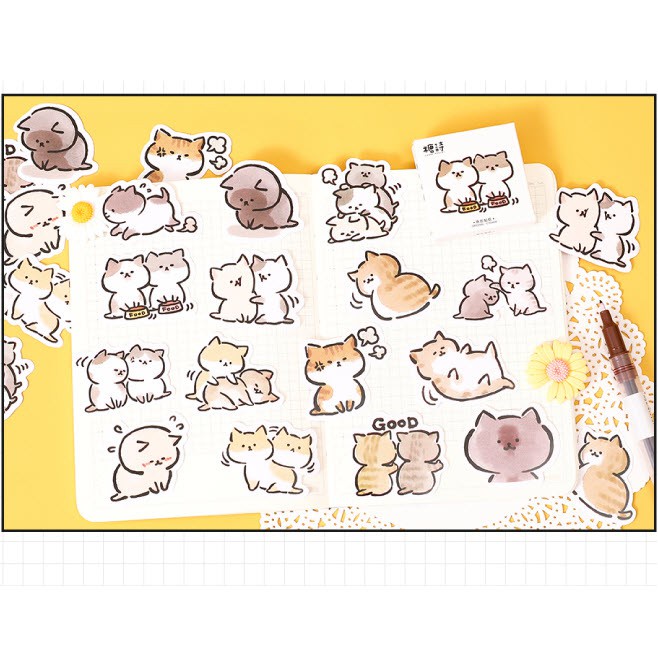 Fluff's 45pcs Naughty Cat Sticker Cute Sticker Kawaii Sticker Cartoon Sticker Journal Sticker Box Sticker Stationery
