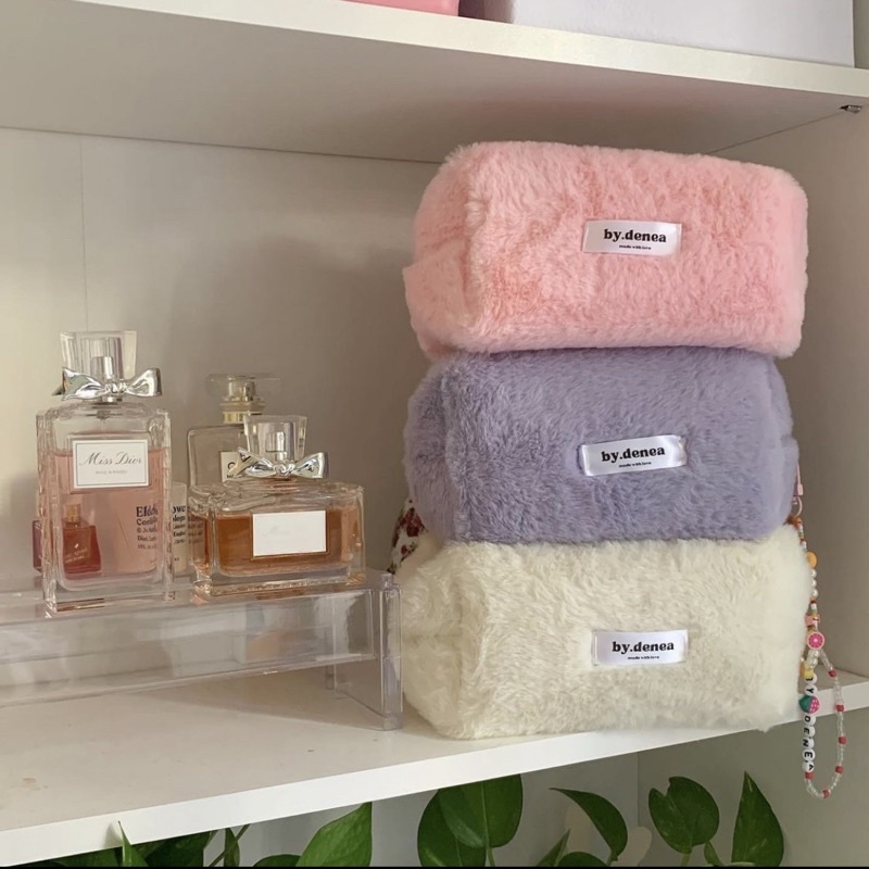 Fluffy pouch in White Lilies