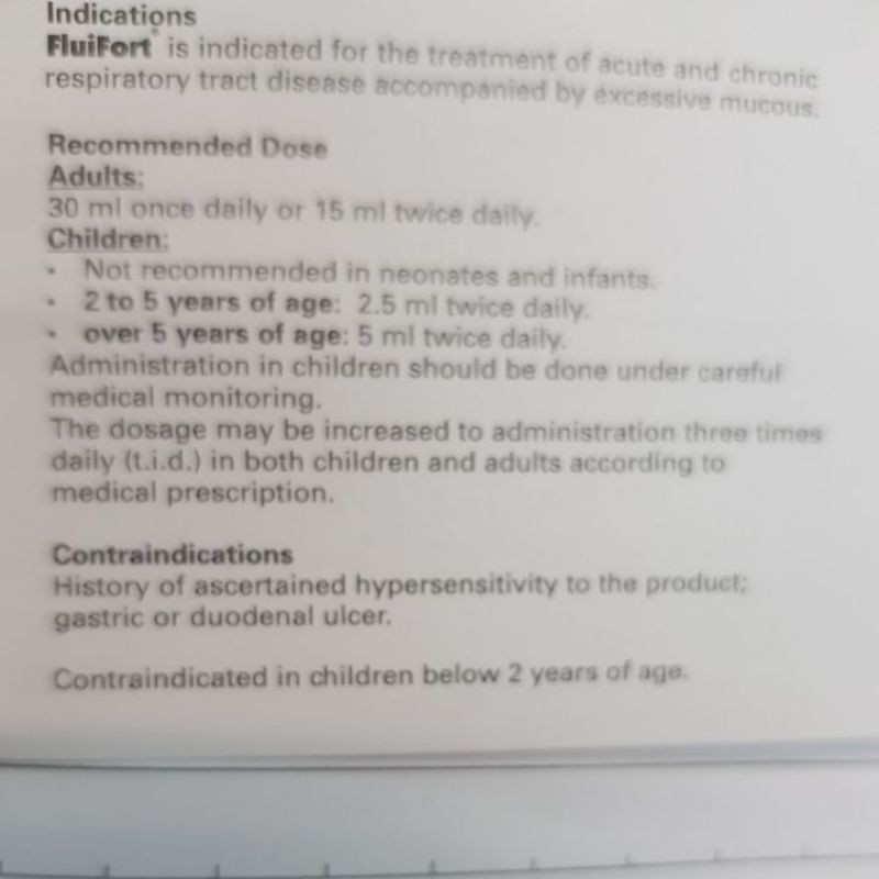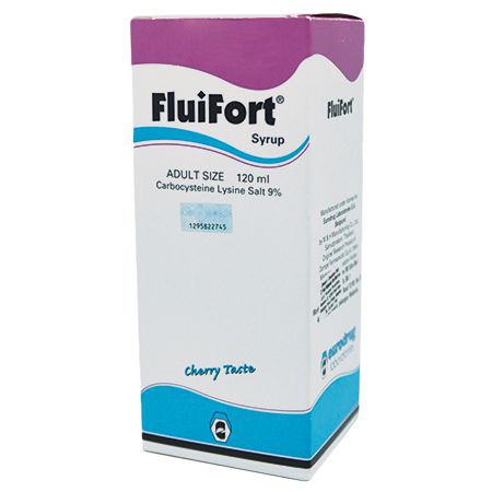 Fluifort Syrup 120ml Carbocysteine Lysine Salt 9% for chesty cough Excessive Mucous