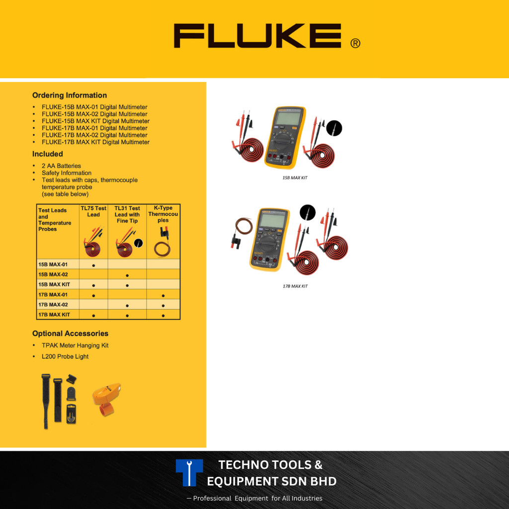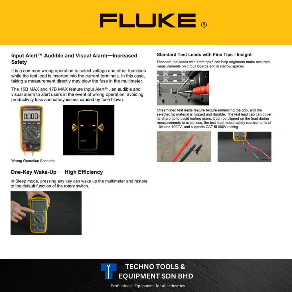 Fluke 15B MAX-01 / MAX-02 / MAX-KIT Economical Digital Multimeter; Capacitance range: 2000u, 10A, 1000V AC/DC