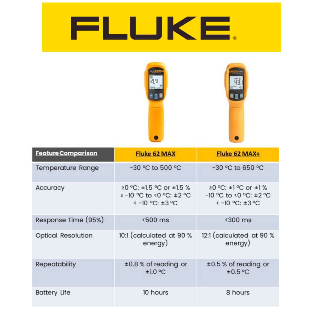 Fluke 62Max ( -30°C to 500 °C ) / 62Max+ (-30°C to 650°C) Infrared Thermometer Temperature Meters