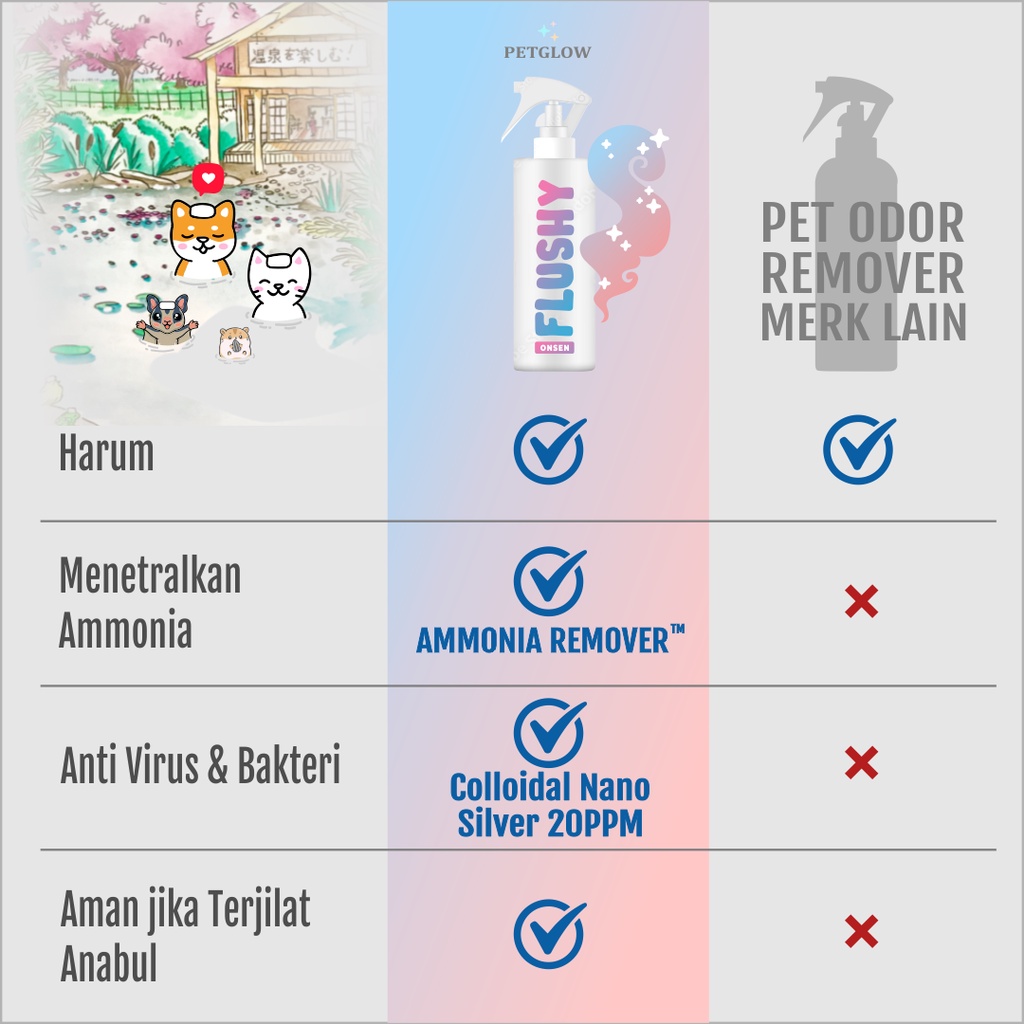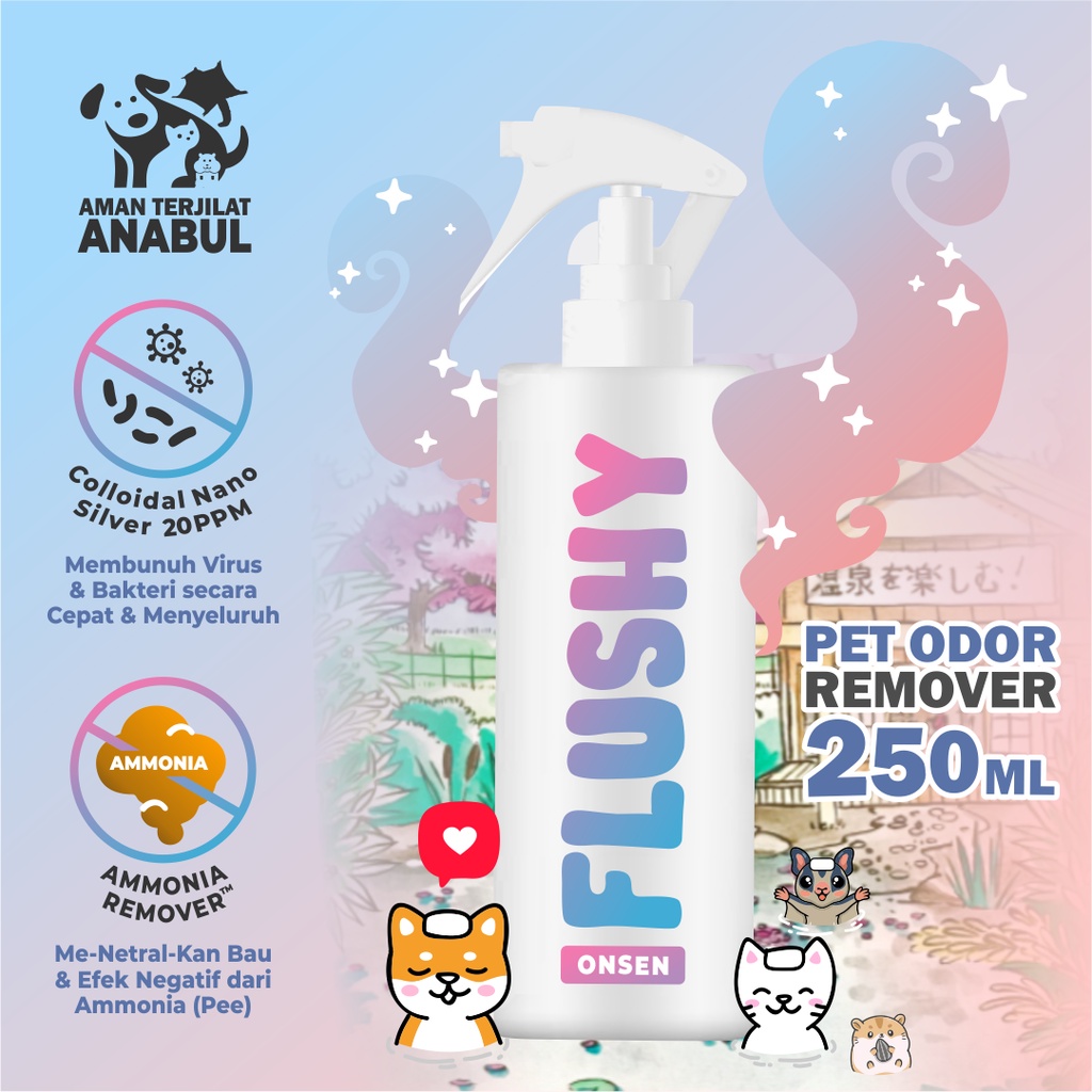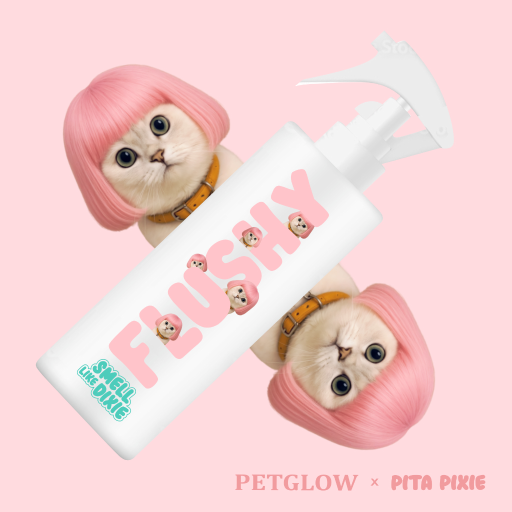 Flushy Pet Odor Remover Spray Food Grade by Petglow x Pita Pixie Eliminates Urine Odor Stubborn Dirt Cleaner Kills Fungus Itching Animal Beds Fragrance for Cats Dogs Hamsters Rabbits