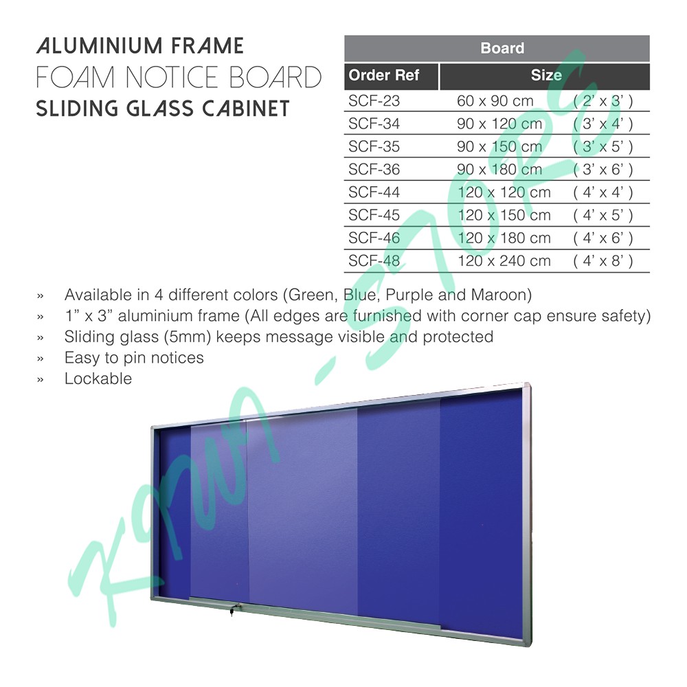 Foam Notice Board With Sliding Glass Cabinet /Foam Notice Board