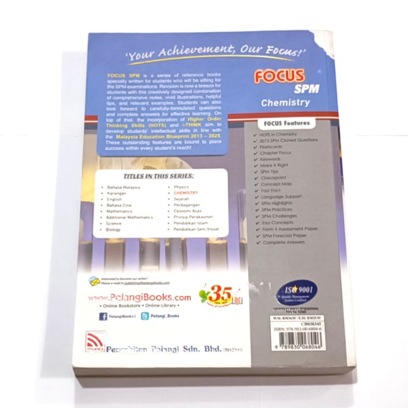 Focus SPM Chemistry Form 4, 5 textbook (Pelangi) [Used/Terpakai]