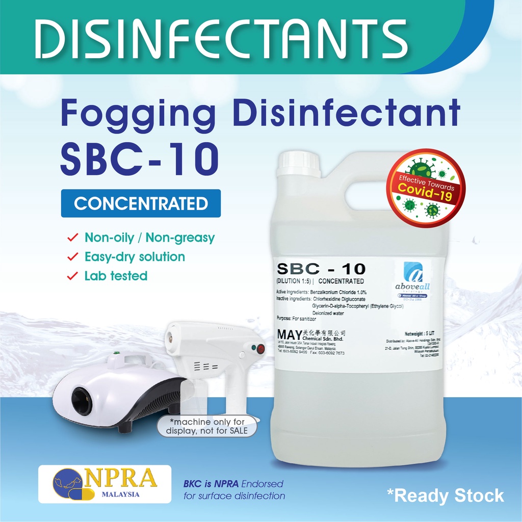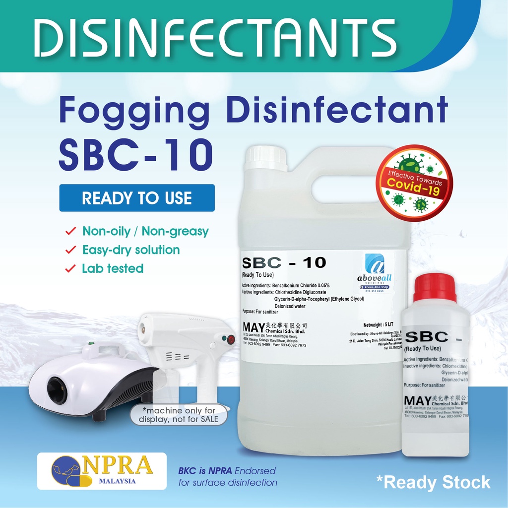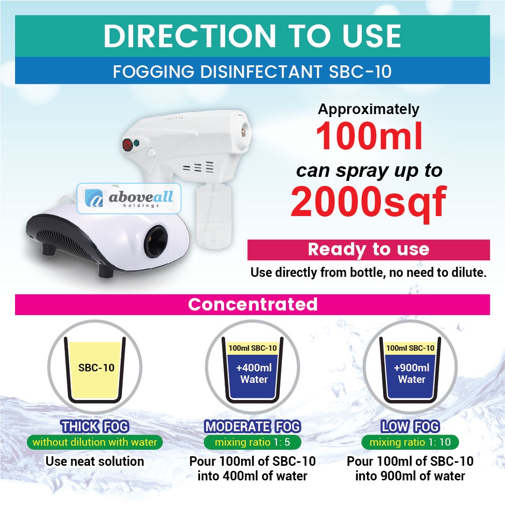 Fogging Disinfectant Liquid Solution SBC -10 / Alcohol Free Multipurpose Surface Disinfectant Liquid 360 RDA Nano Spray