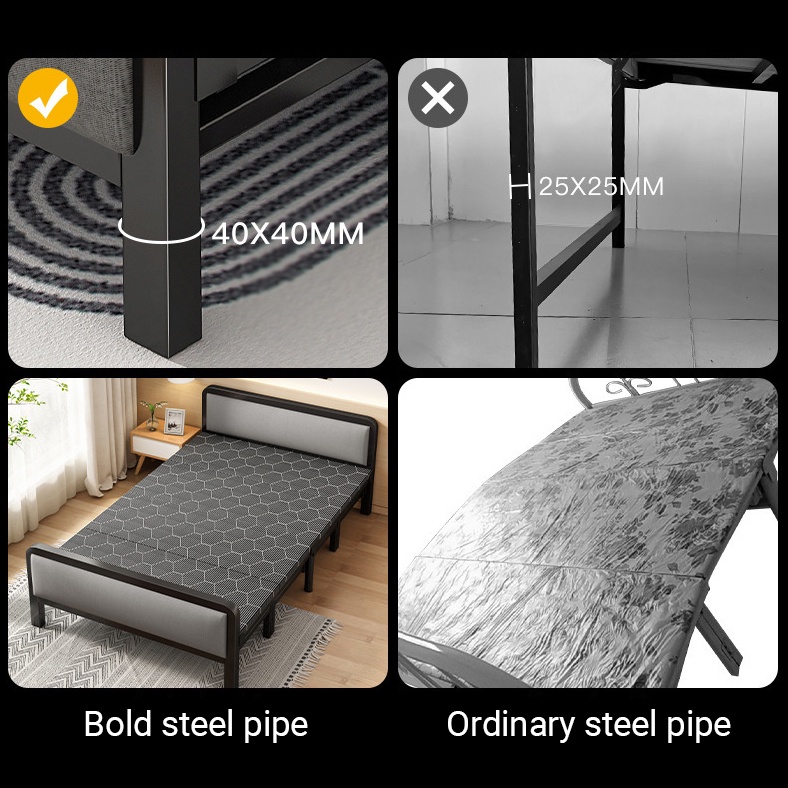 Foldable Bed Frame With Backrest Queen/Single Katil Lipat With Mattress Portable Bed Frame
