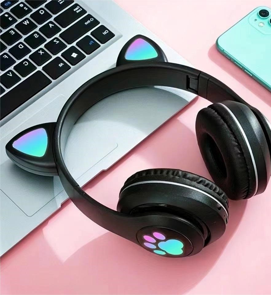 Foldable Bluetooth Cat Ear Headphones LED Light Mic TF Card Foldable Cat Ear