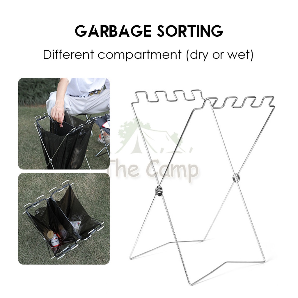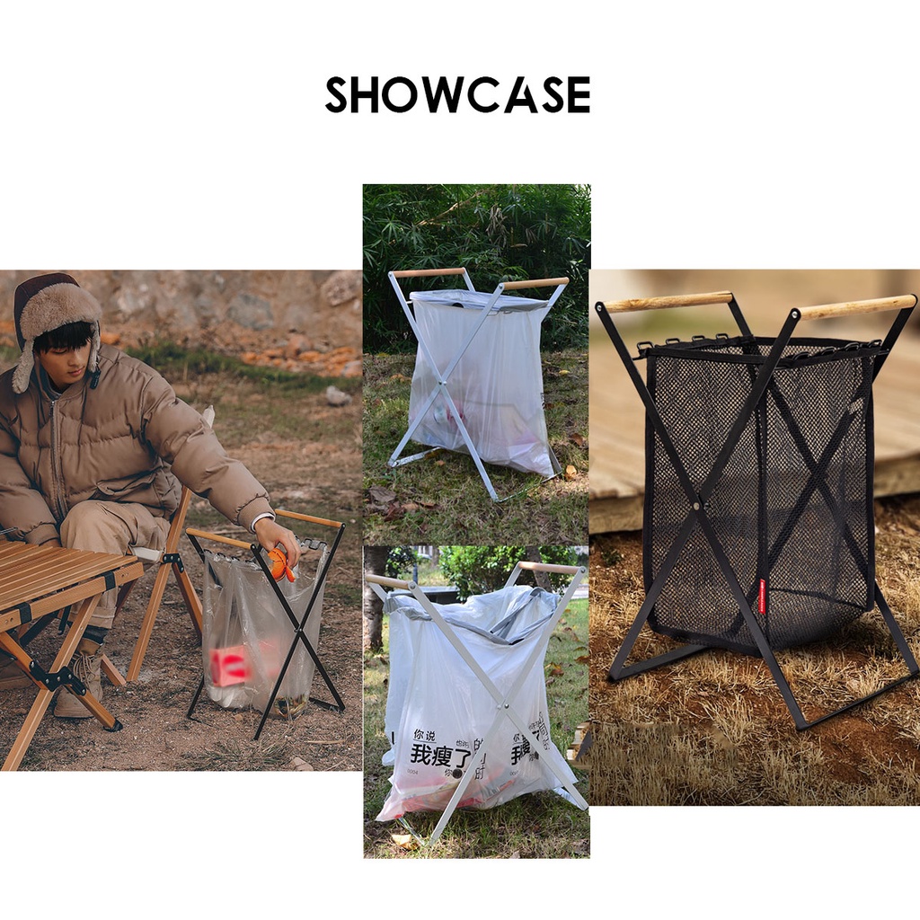 Foldable Garbage Frame Rack Bin Disposable Portable Rubbish Bag Outdoor Camping Trash Holder Stand Wood Steel Storage