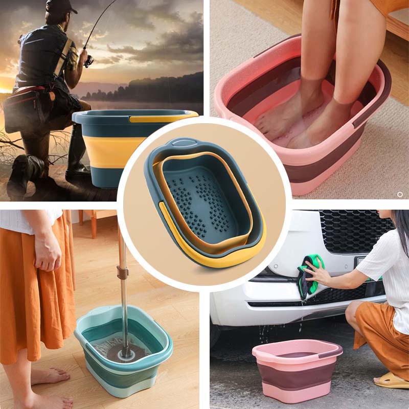 Foldable Household Space-saving Plastic Bucket Basin / Foot Soak & Massage Relaxing Large Capacity Water Bucket Basin