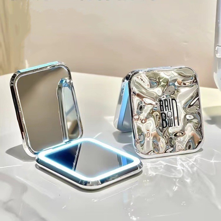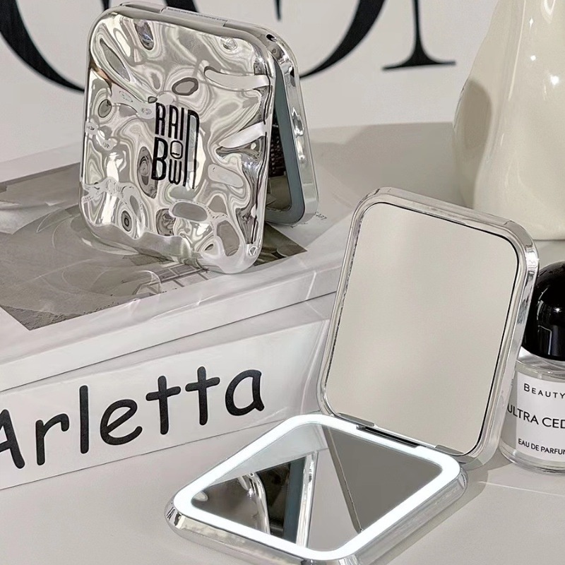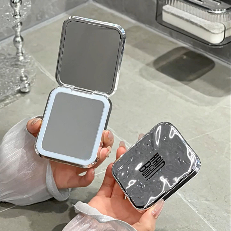 Foldable LED Makeup Mirror Portable Portable Light Luxury with Light Magnifyable Household Mini Makeup Small Mirror Female