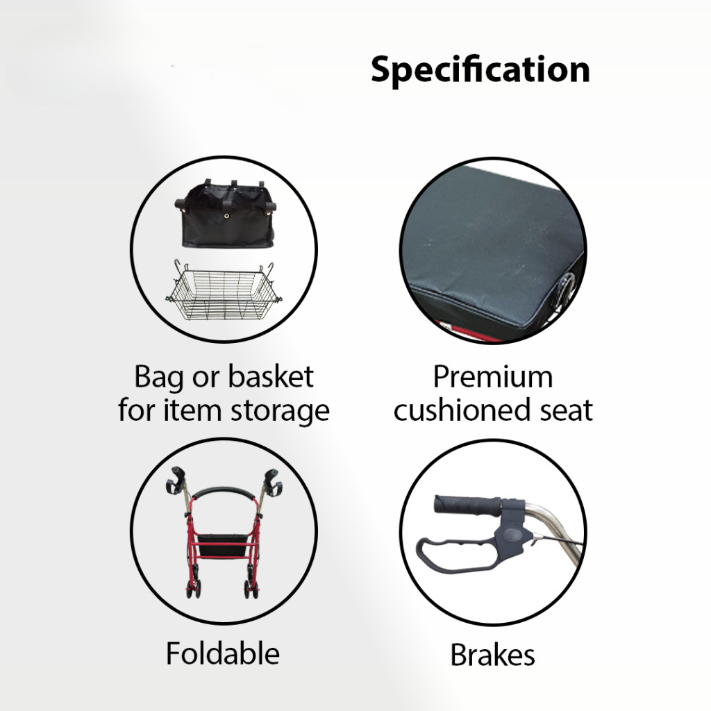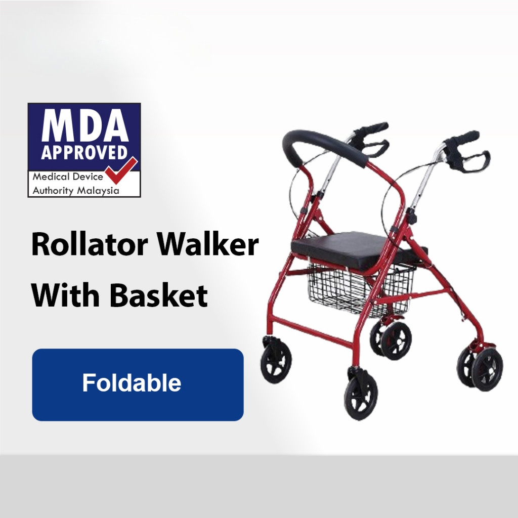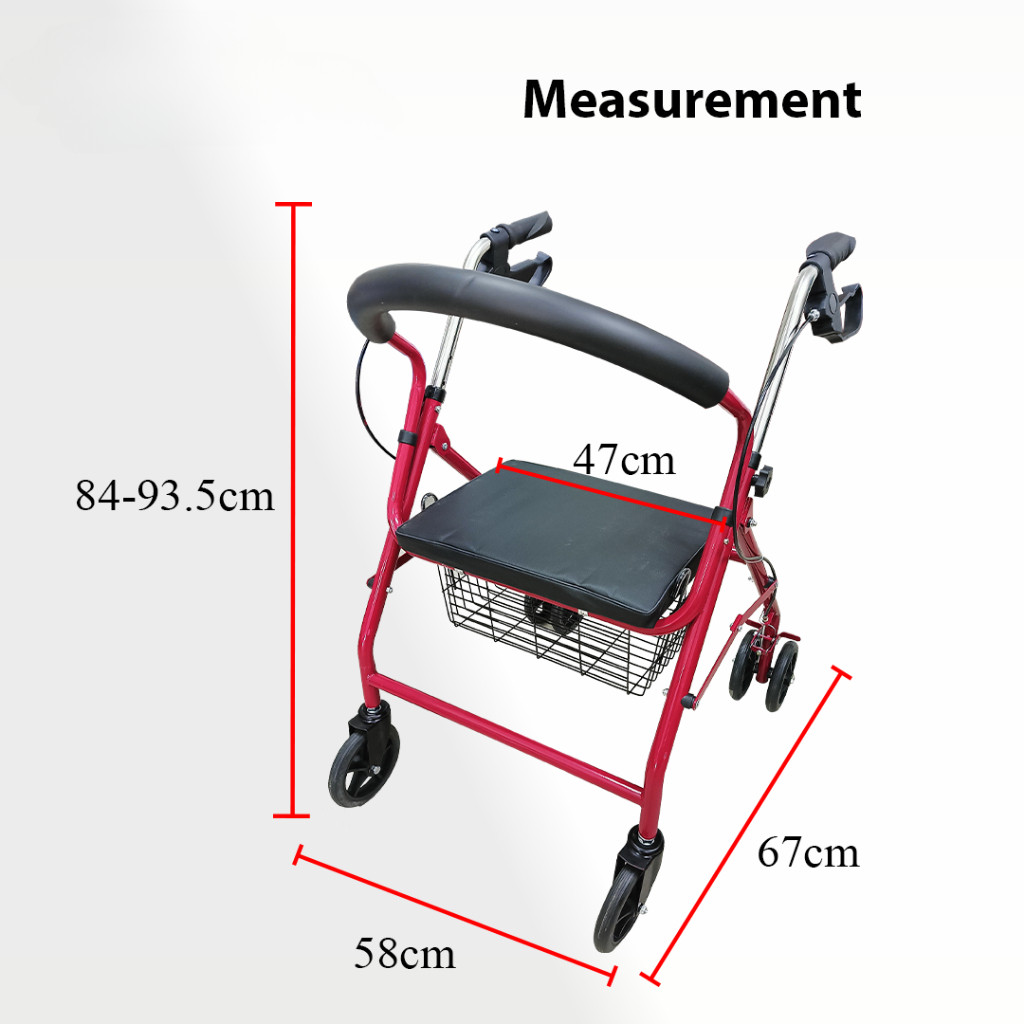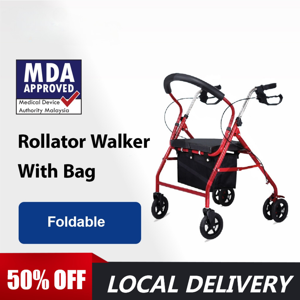 Foldable Lightweight Rollator Walker with Seat & Wheels - 4-Wheel Frame for Adults