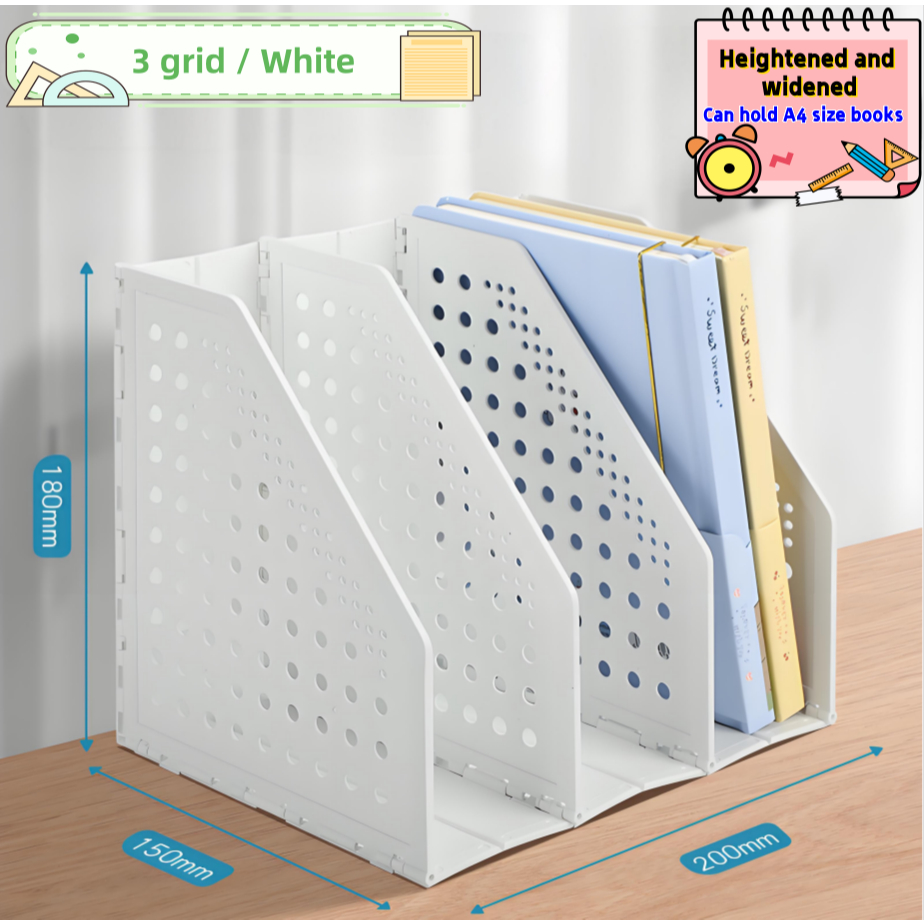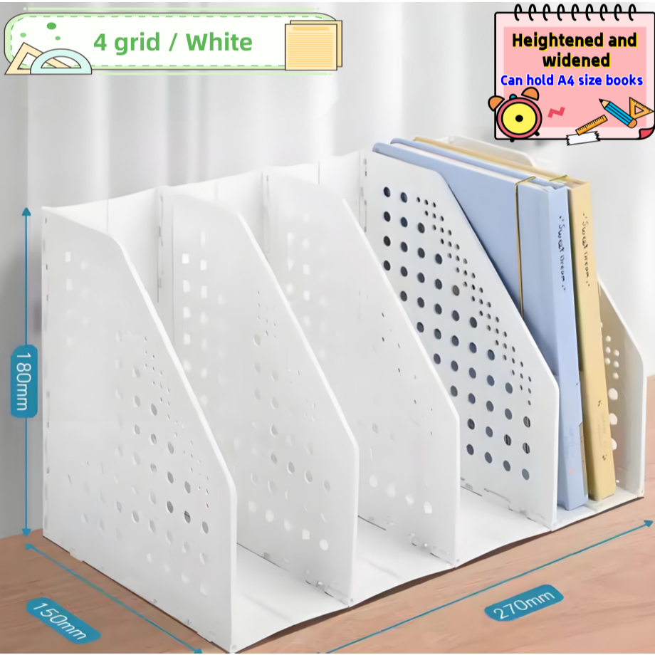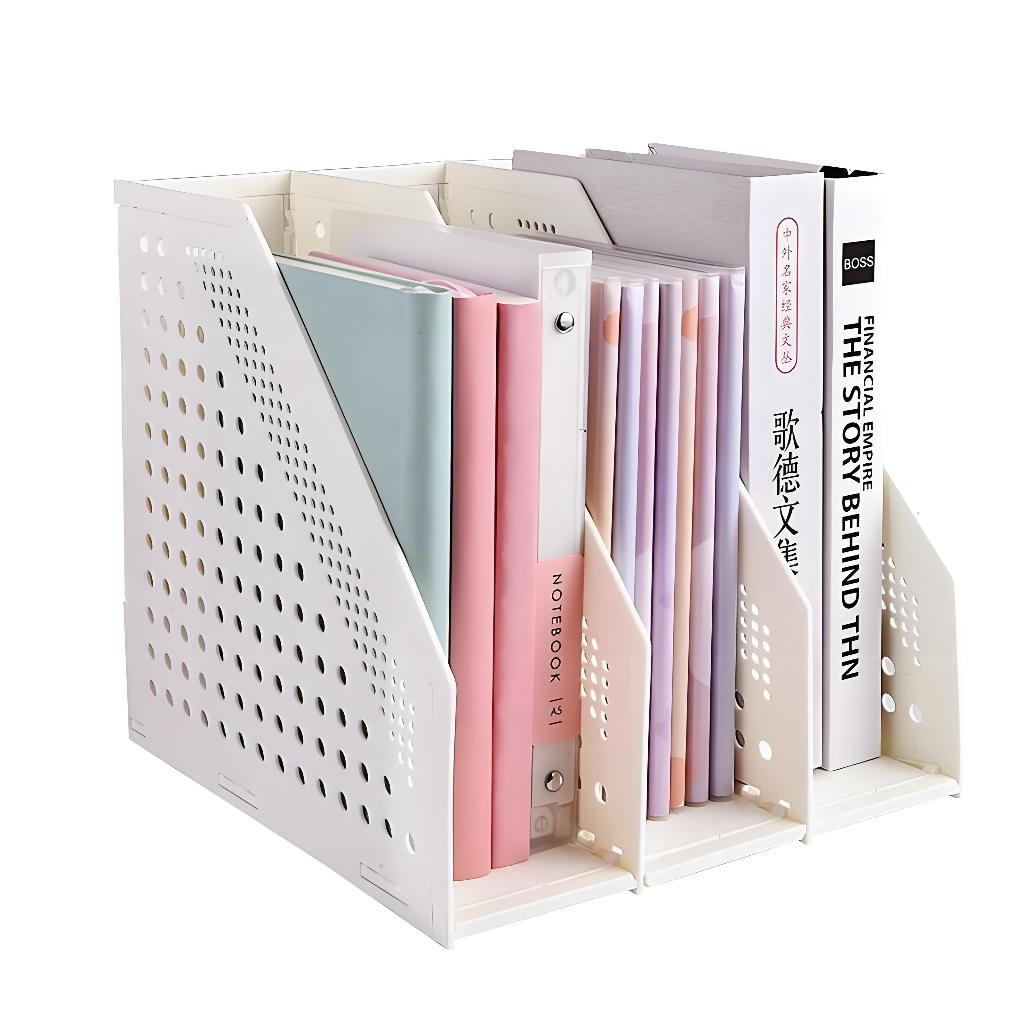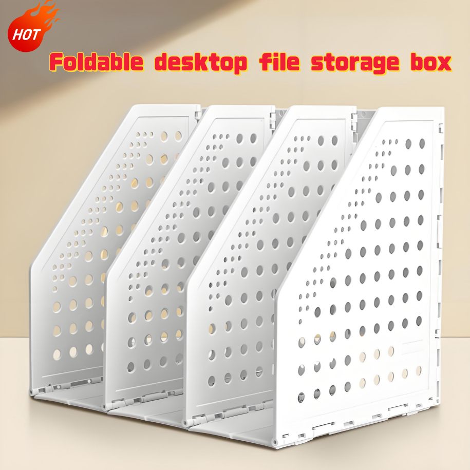 Foldable Magazine File Holder and Desk Organizer with 4 Compartments, Magazine Office Supplies Rack
