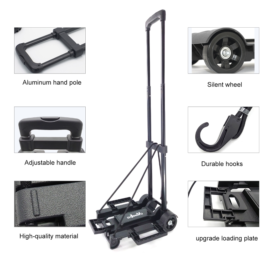 Foldable Small Trolley Fordable Trolley Shopping Cart Folding Hand Truck Steel Trolley with Two Wheels and Telescoping Handle Travel Luggage Carrier Trolley