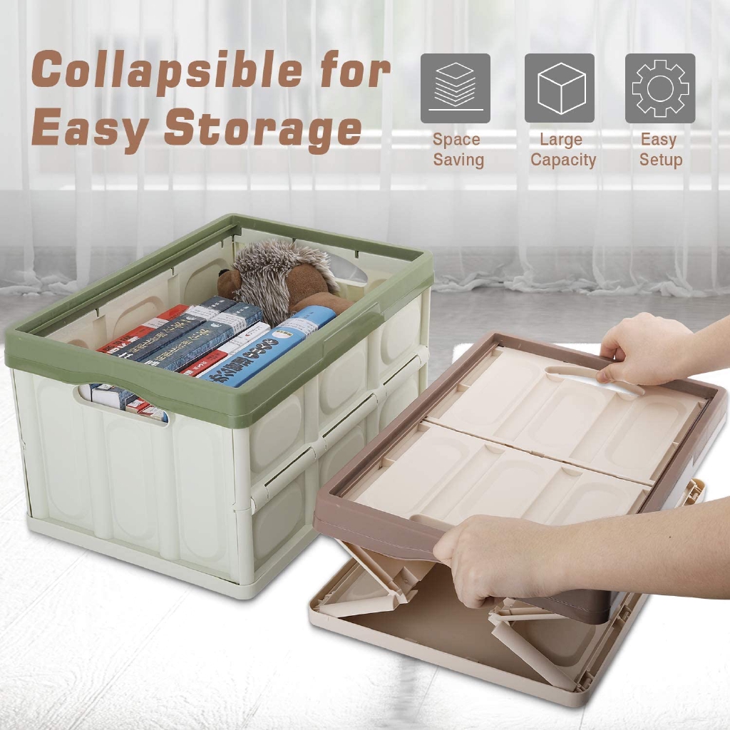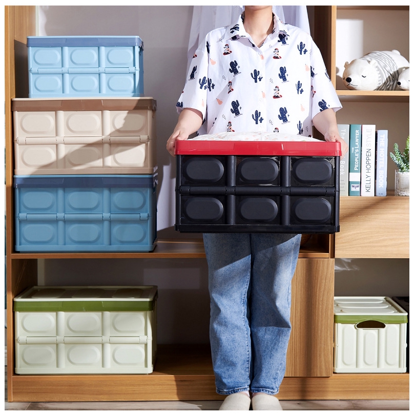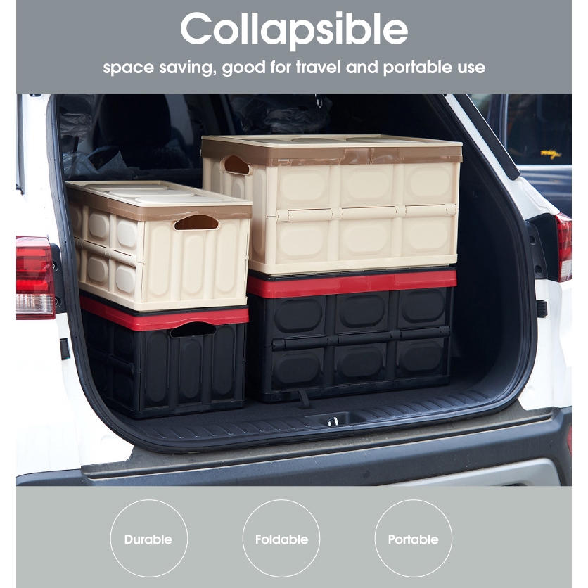 Foldable Storage Bin Stackable Container For Car Indoor Portable Bekas Simpan Barang Untuk Kereta 30L 56L RC36