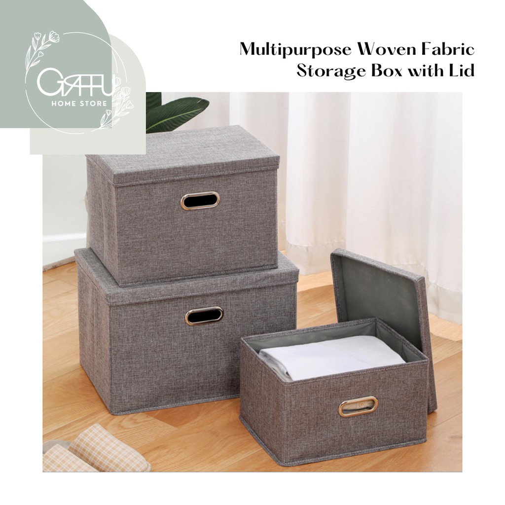 Foldable Storage Box with Lid Linen Fabric Storage Basket with Handle Organizer Box Containers for Shelf Home Office