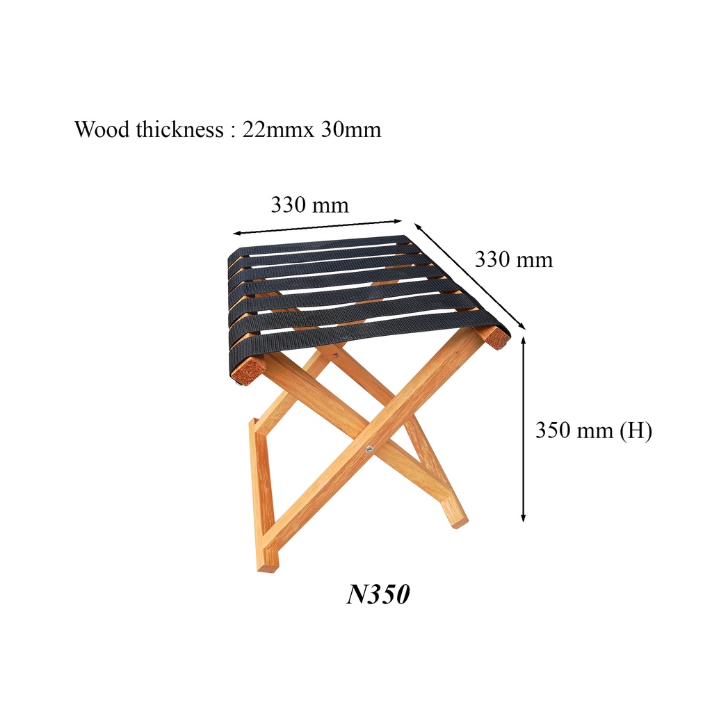 Foldable Wooden Stool Hiking Camping Fishing Stool with Nylon Strap (Natural Colour)