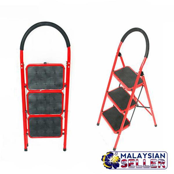 Folding 3-Step Lightweight Steel Step Ladder with Hand Grip (Small Defect)