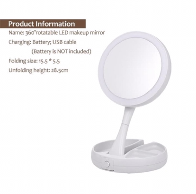 Folding LED mirror Make up LED mirror Light 2-sided Makeup Magnifying mirror Cosmetic Folding LED mirror