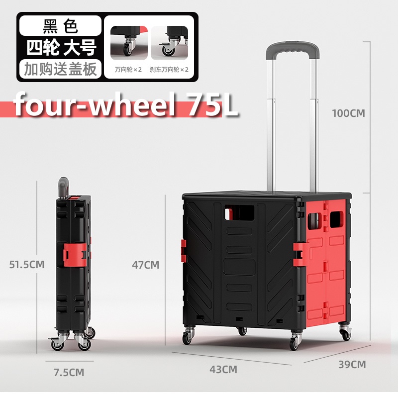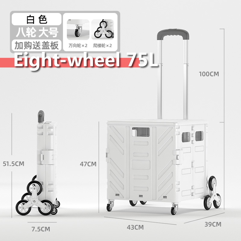 Folding Shopping Cart 75L Trolley Storage Movable Climber Foldable Trolley Hand Pull Trailer Shopping Trolley