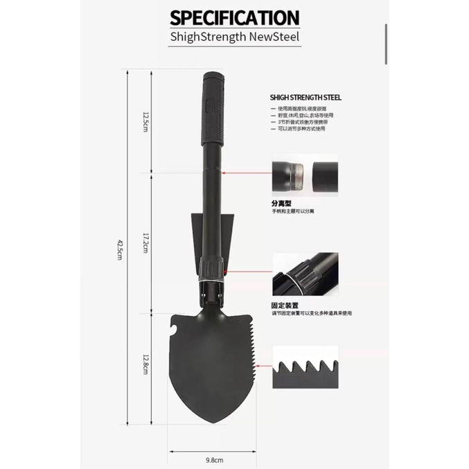 Folding Shovel Garden Shovel Cangkul Lipat Mini Shovel Engineering Shovel Spade Multi-Purpose Military Tactical Wild