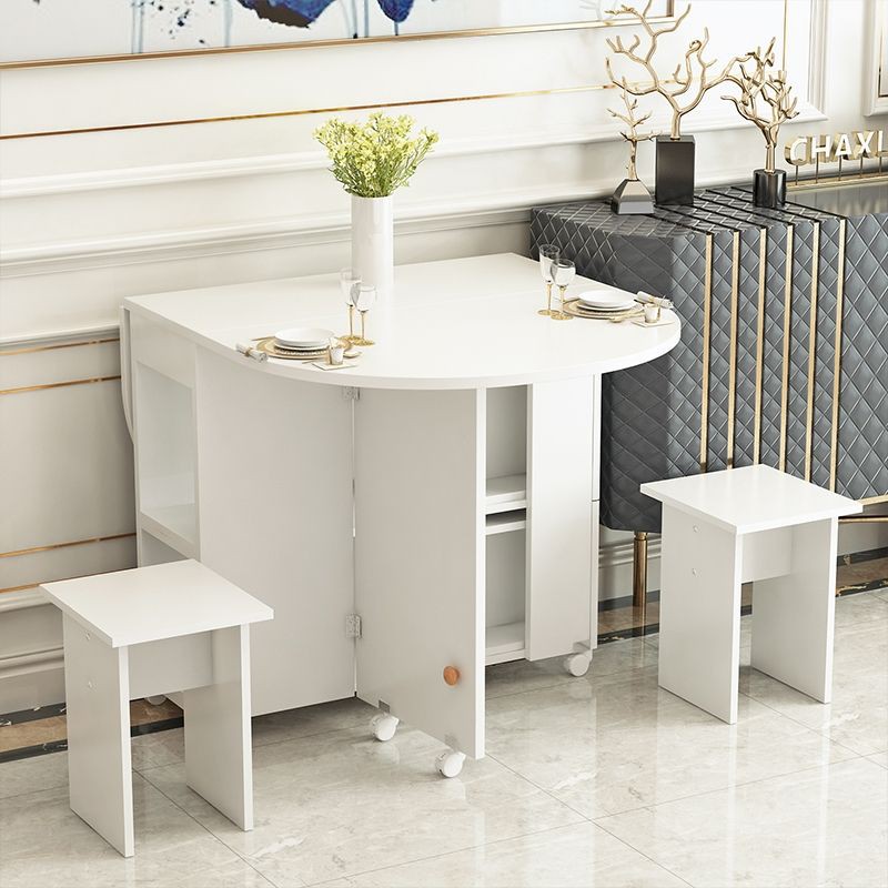 Folding dining table for small apartment household movable with wheels simple round rectangle simple multifunctional