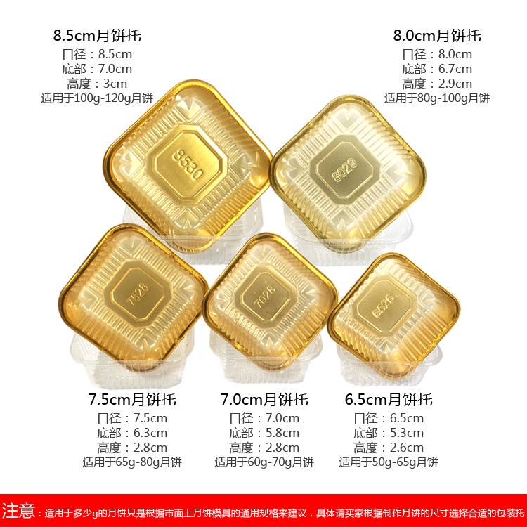 Food Grade Transparent Plastic Mooncake Packing Tray Gold Tray Bakery Dessert Tray 50g/80g/100g/125g