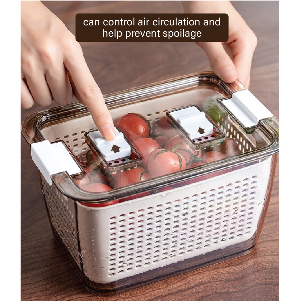 Food Storage Box Fruit Vegetable Drain Storage Containers With Lid Kitchen Fridge Organizer Kotak Penyimpan Buah Sayur