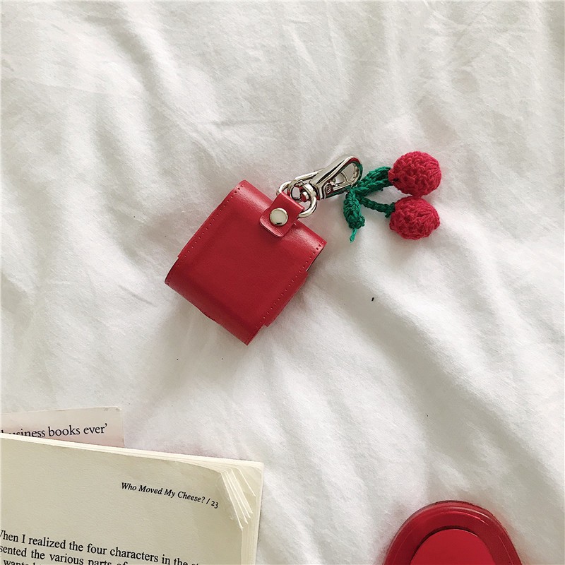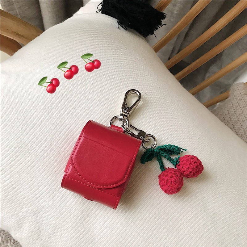 For Airpods pro 2nd case keychain Red Cherry PU leather for AirPods 1 2 pro Shockproof wireless bluetooth Earphone Protective Cover