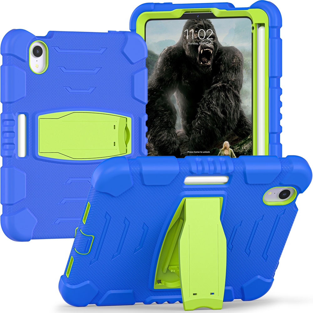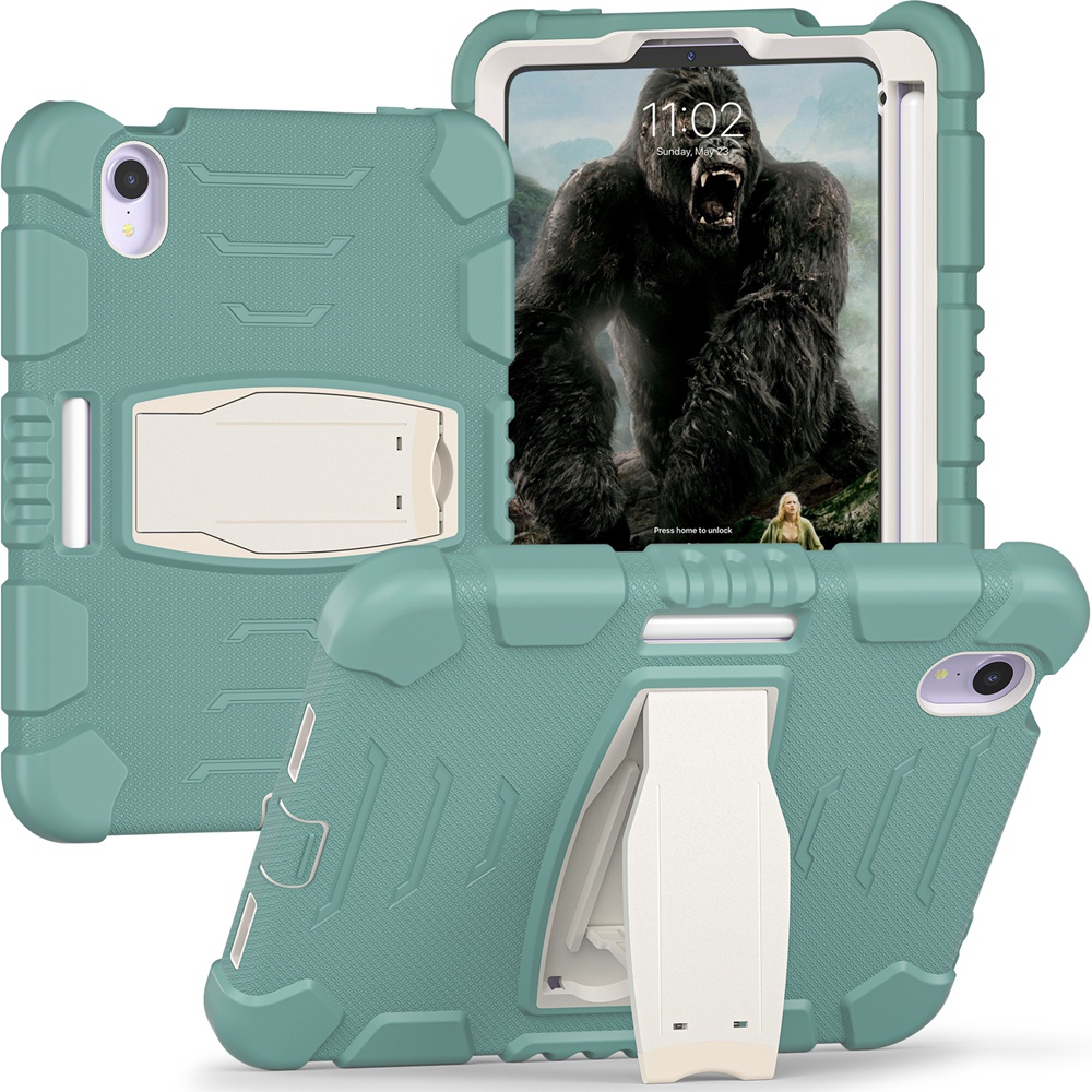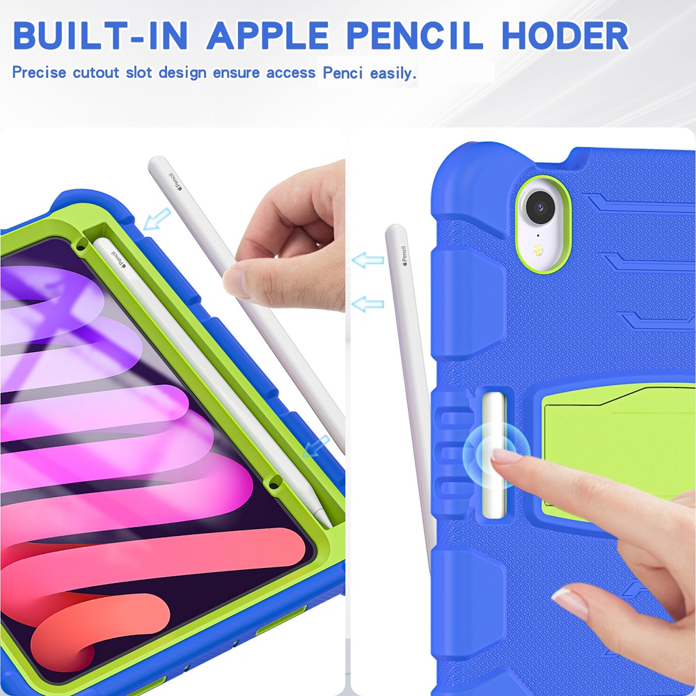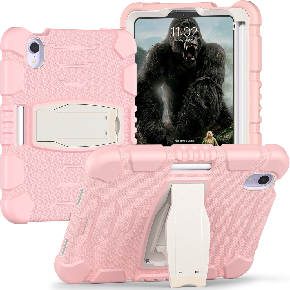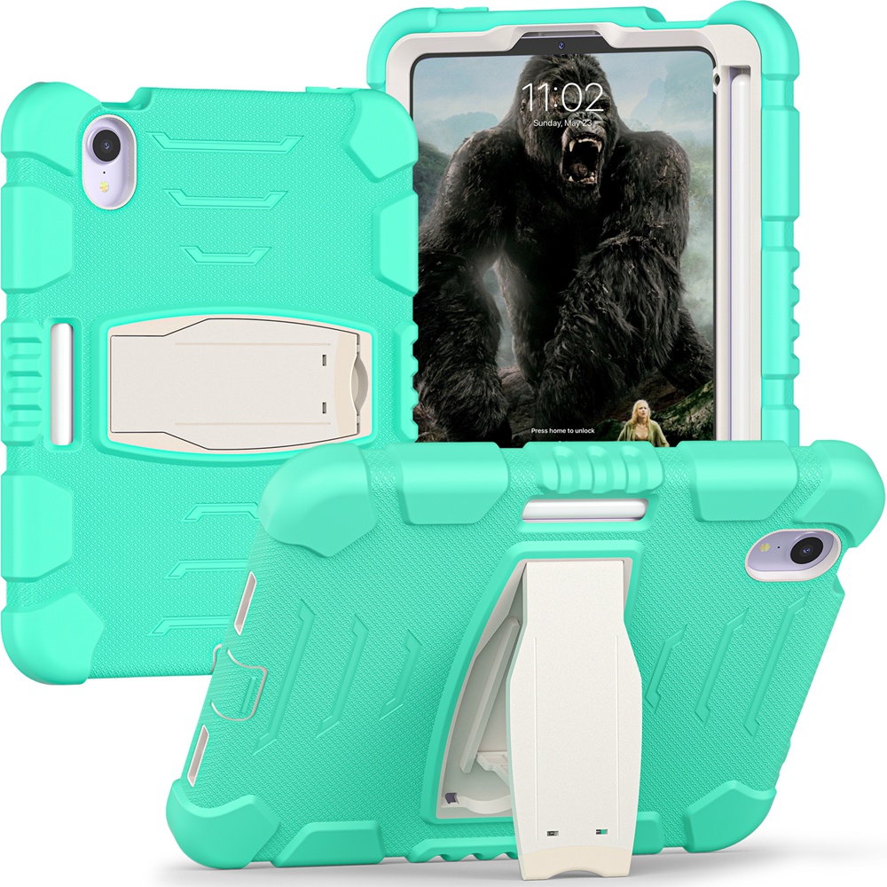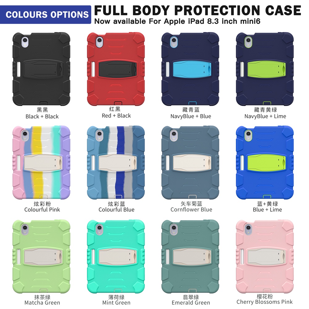 For Apple iPad mini 6 7 6th Gen mini6 mini7 2021 2024 A17 Pro A2567 A2568 A2569 A2993 A2995 Case Kids Safe Armor Shockproof Hard PC Silicon Stand Tablet Cover Casing