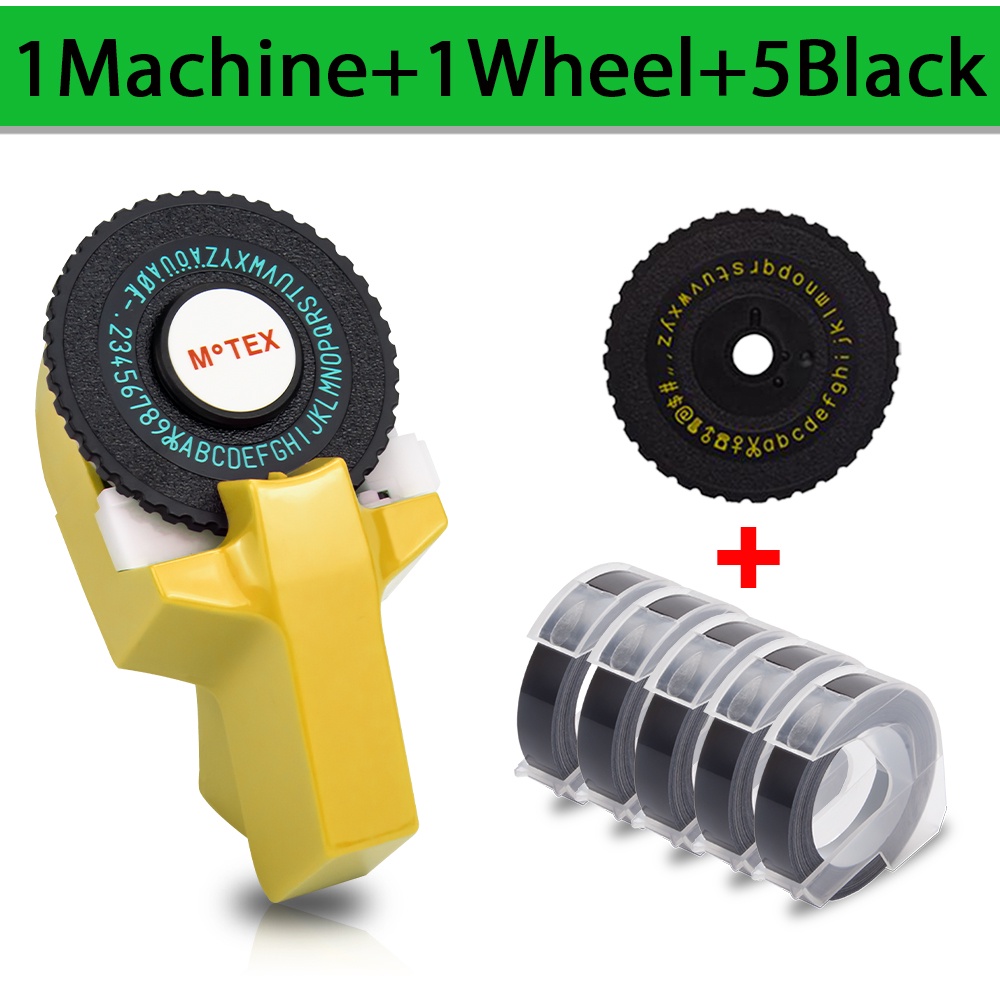 For DYMO MOTEX E101 Label Maker with 5pcs 3D Embossing Tape 9mm Black tape for DYMO DIY Manual embossing label maker Typewriter