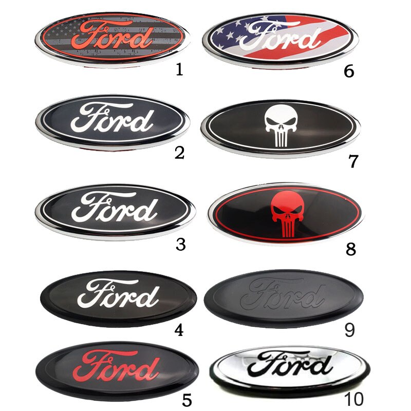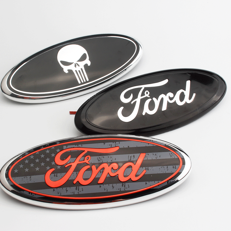 For Ford Logo 9 Inch Front Hood Bonnet Emblem Badge and 7 Inch Rear Trunk Sticker F150 F250 Explorer Skull Logo