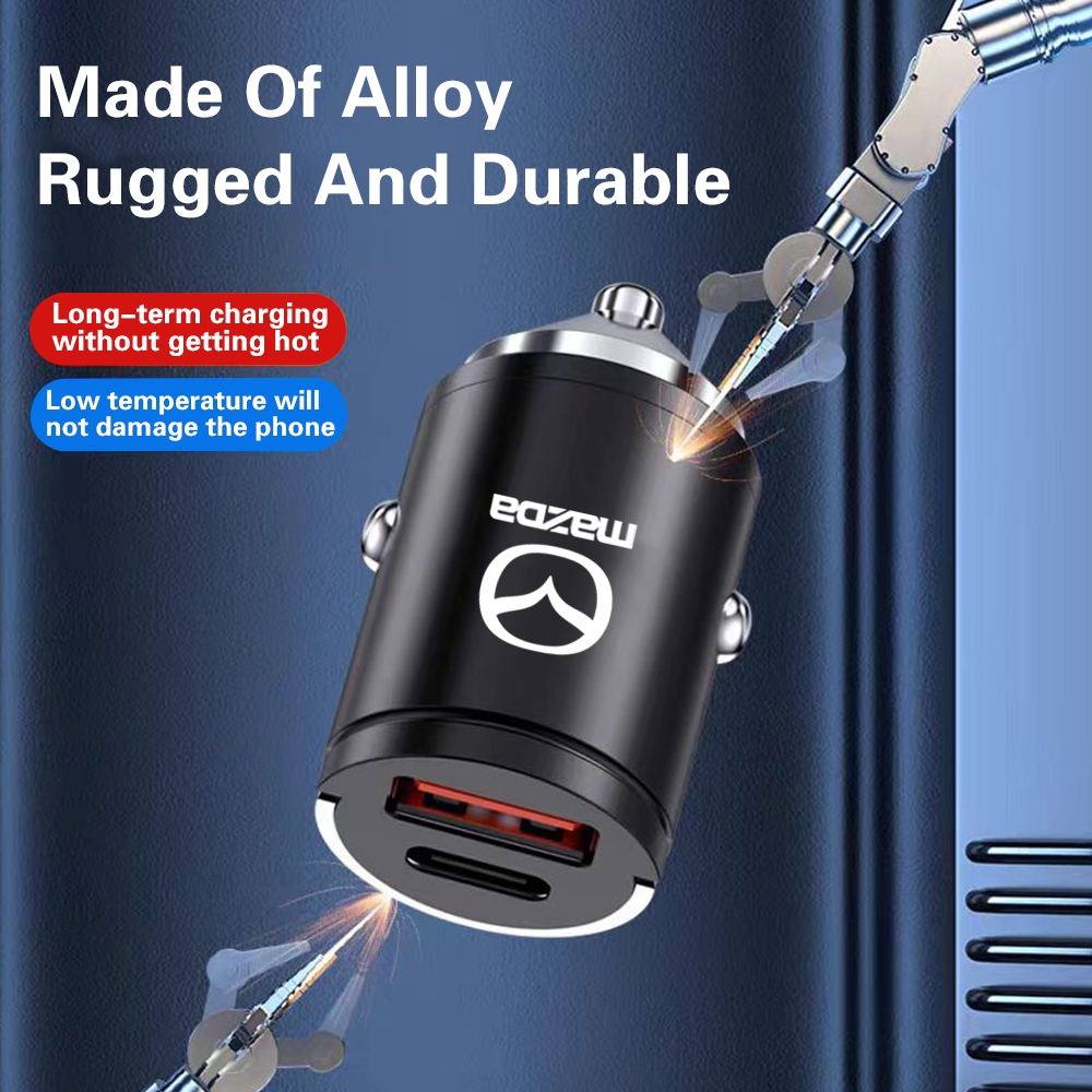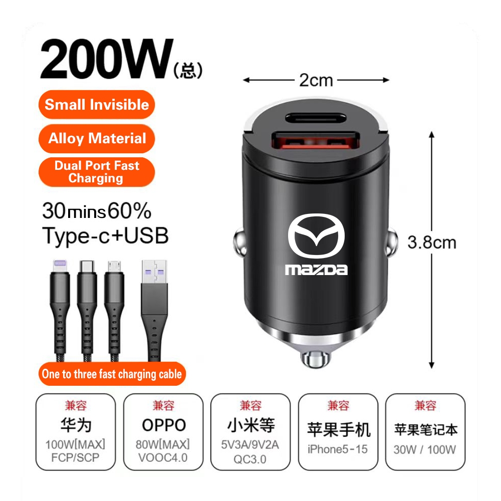 For Mazda Car Phone Quick Charger 200W Type C PD QC3.0 USB Dual Ports Fast Charging for Mazda 2 3 6 CX3 CX5 CX7 CX8 CX9 CX30 MX-5 Car Cigarette lighter