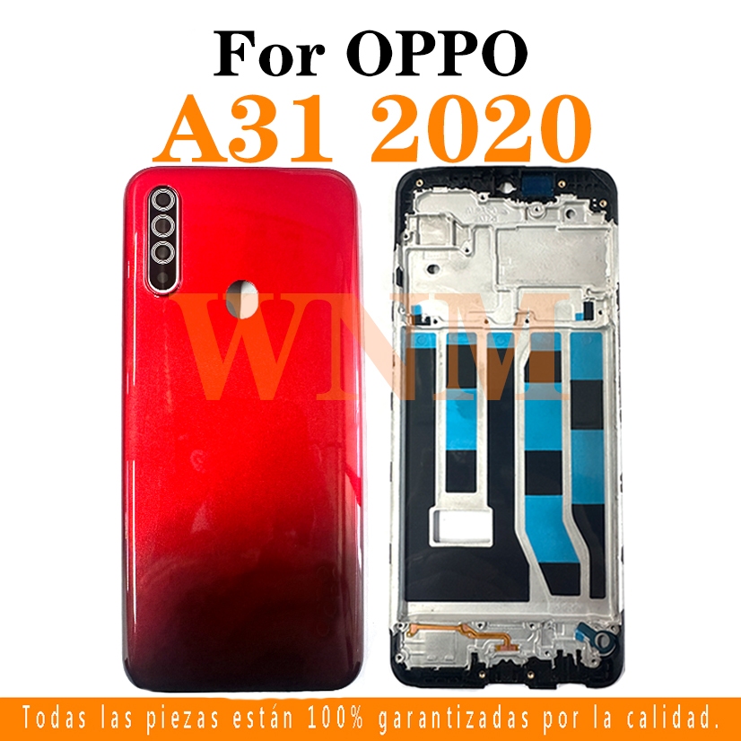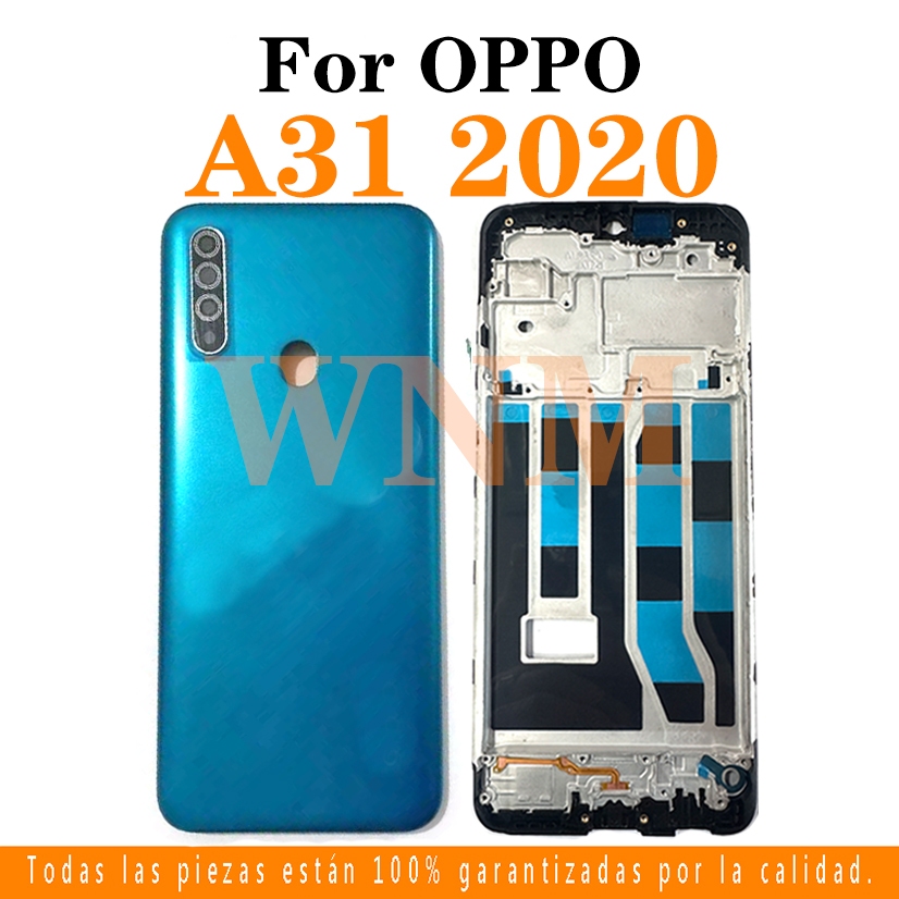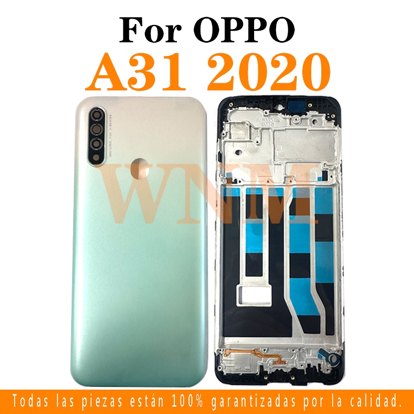 For OPPO A31 2020 LCD Front Frame Bezel Back Battery Cover + Middle Frame + Camera Frame Parts Rear Case Housing Center Chassis Cover + Buttons