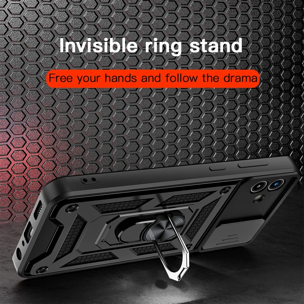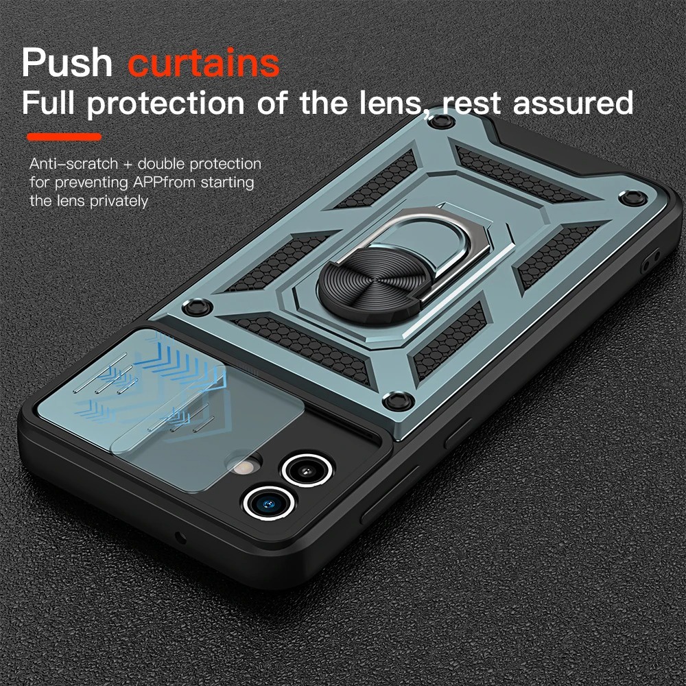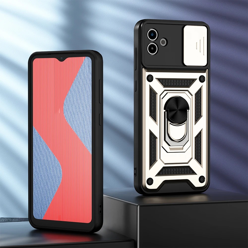 For Samsung Galaxy A05 A05S A055F A04 A04S A04e A045F Push Slide Camera Lens Protection Phone Case Shockproof Armor Casing Anti-fall Stand Holder Bracket Hard Back Cover