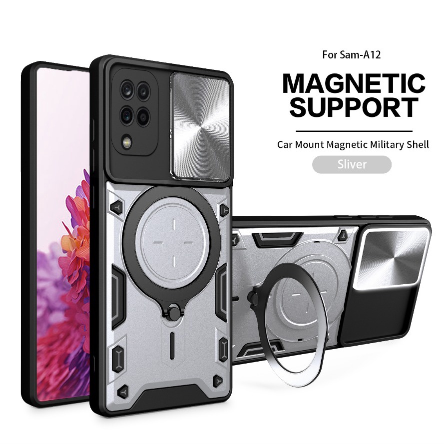 For Samsung Galaxy A12 M12 Phone Case Armor Ring Bracket Stand Casing hp Samsunga12 Galaxym12 SM-A125F SM-M127F Shockproof Hard Back Cover Simple Plain Durable