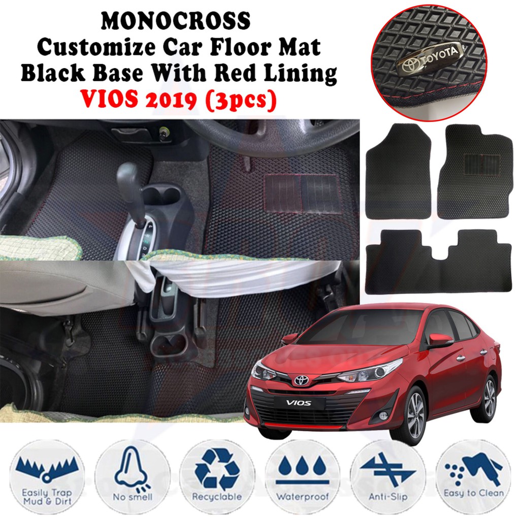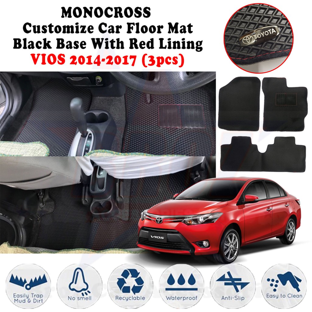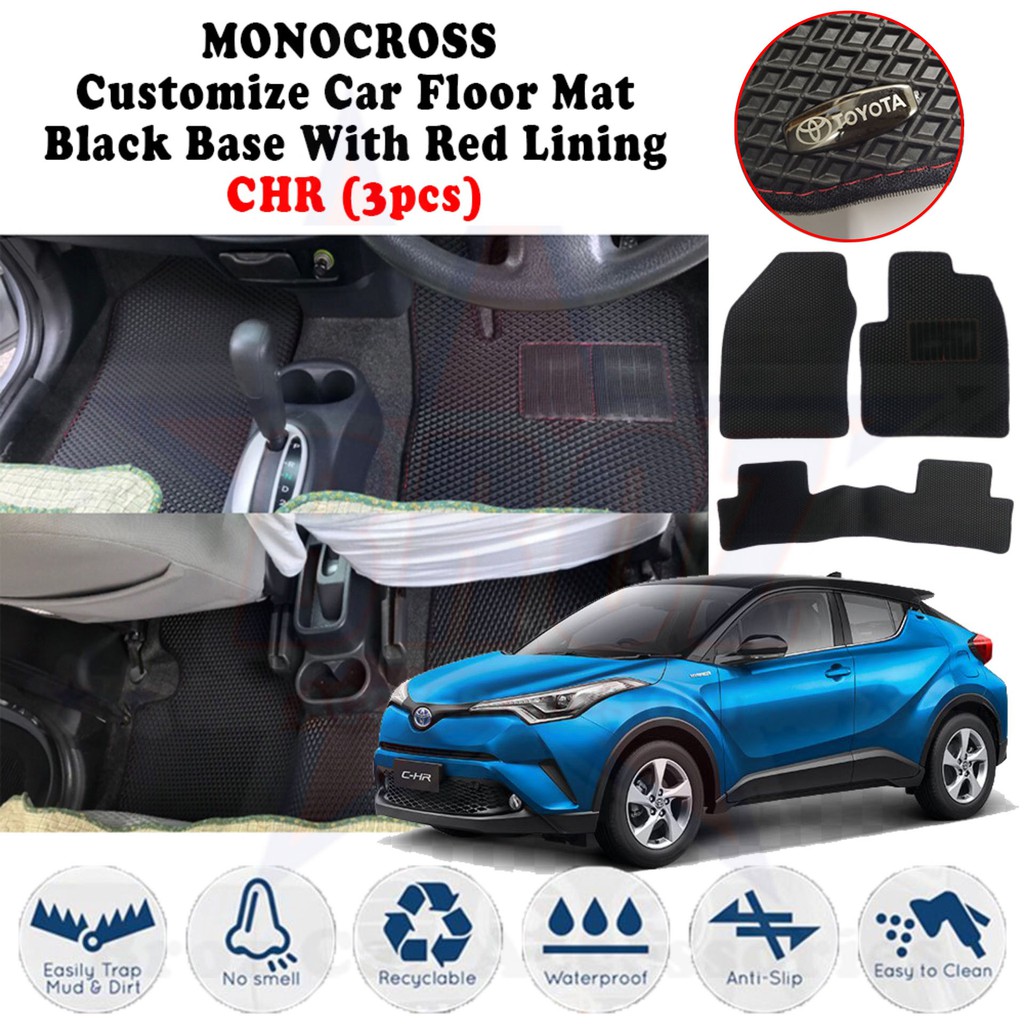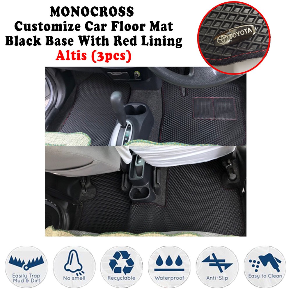 For TOYOTA Car TRAPMAT CarMat Customize Car Floor Mat Black With Red Lining (4 pcs) Water Proof, Anti Slip Trapmat