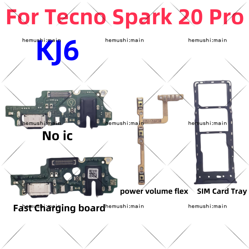 For Tecno Spark 20 Pro KJ6 Power Volume Flex Button Switch USB Charger Charging Port Board Ribbon Cable Flex Fast Charging board SIM Card Tray
