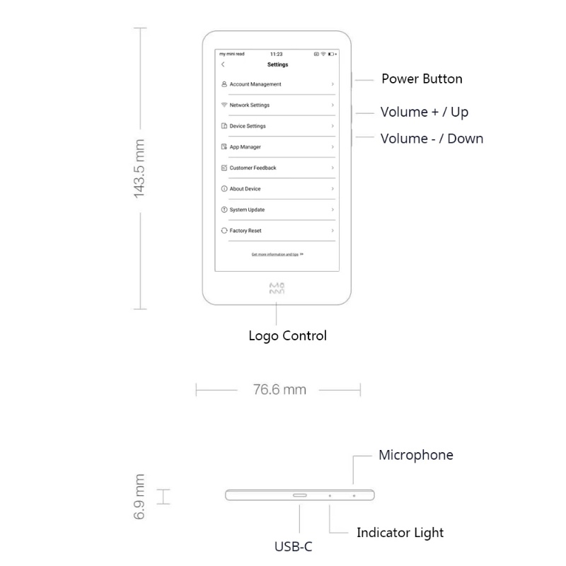 For Xiaomi Moaan InkPalm 5 Pro E-ink Ebook Reader 5.2Inch 64GB Android 8.1 284PPI Screen Tablet Smart Electronic Book